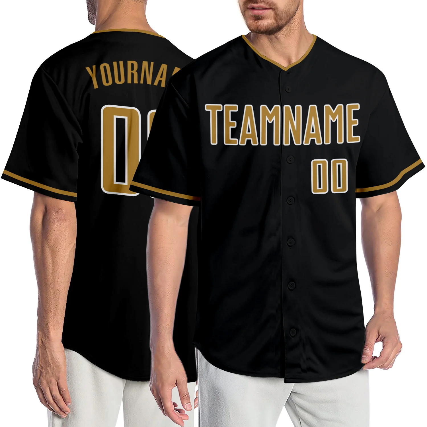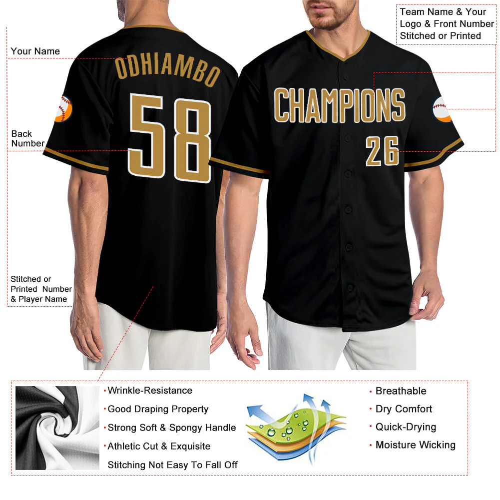 Custom Black Old Gold-White Authentic Baseball Jersey