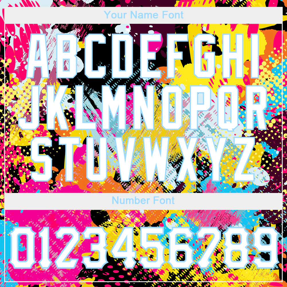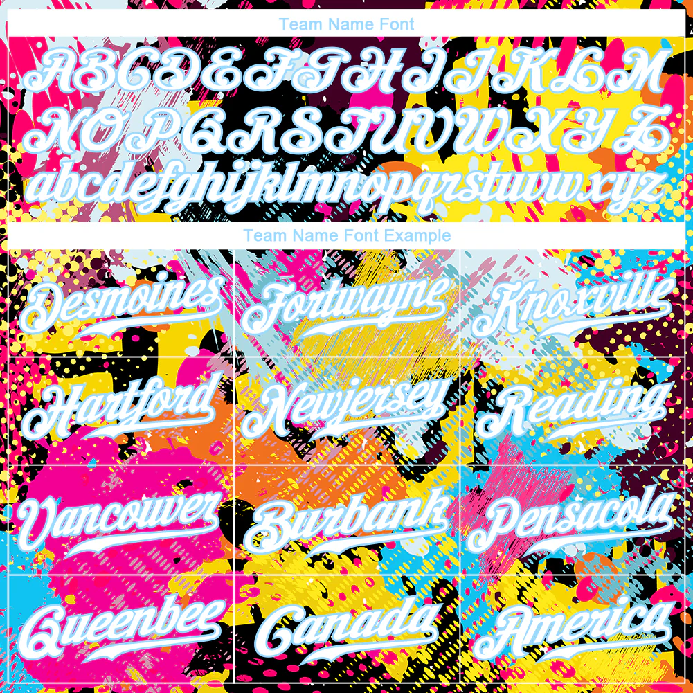 Custom Graffiti Bright Psychedelic Pattern White-Light Blue 3D Authentic Baseball Jersey