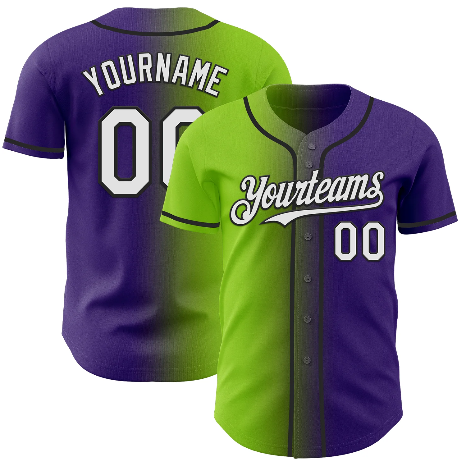 Custom Purple White Neon Green-Black Authentic Gradient Fashion Baseball Jersey