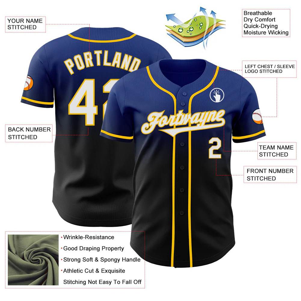 Custom Royal Black-Yellow Authentic Fade Fashion Baseball Jersey