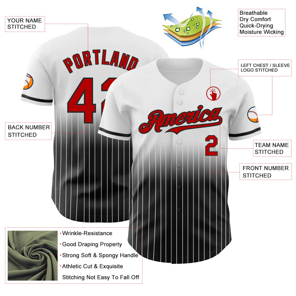 Custom White Pinstripe Red-Black Authentic Fade Fashion Baseball Jersey
