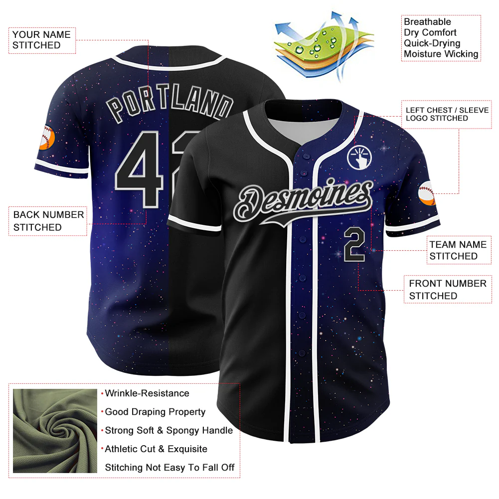 Custom Black White 3D Pattern Design Starry Sky Authentic Baseball Jersey