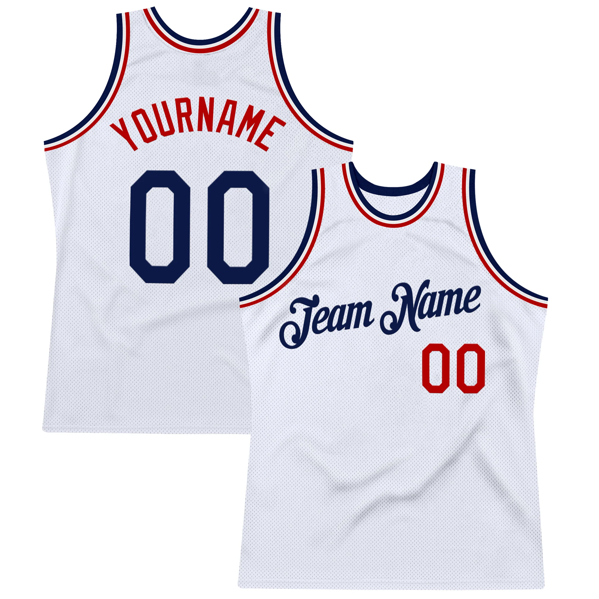 Custom White Navy-Red Authentic Throwback Basketball Jersey