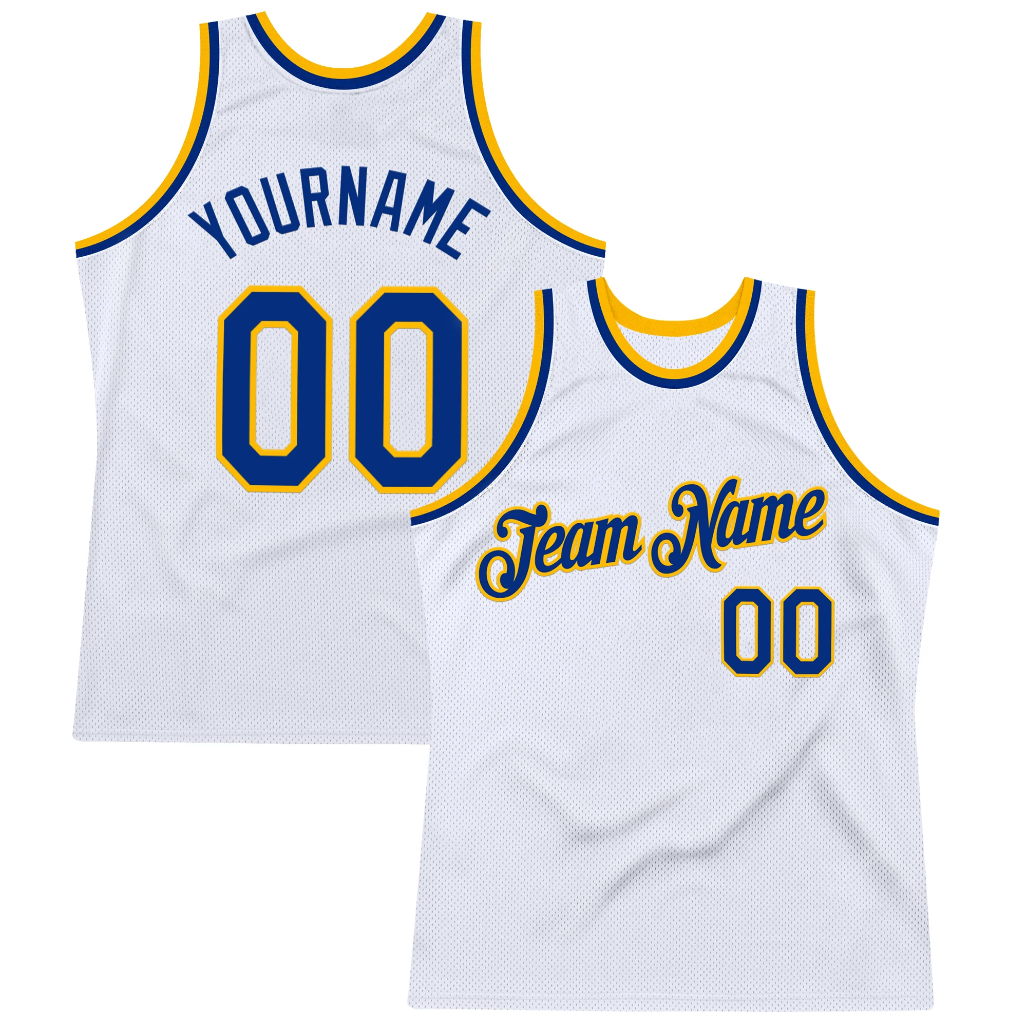 Custom White Royal-Gold Authentic Throwback Basketball Jersey
