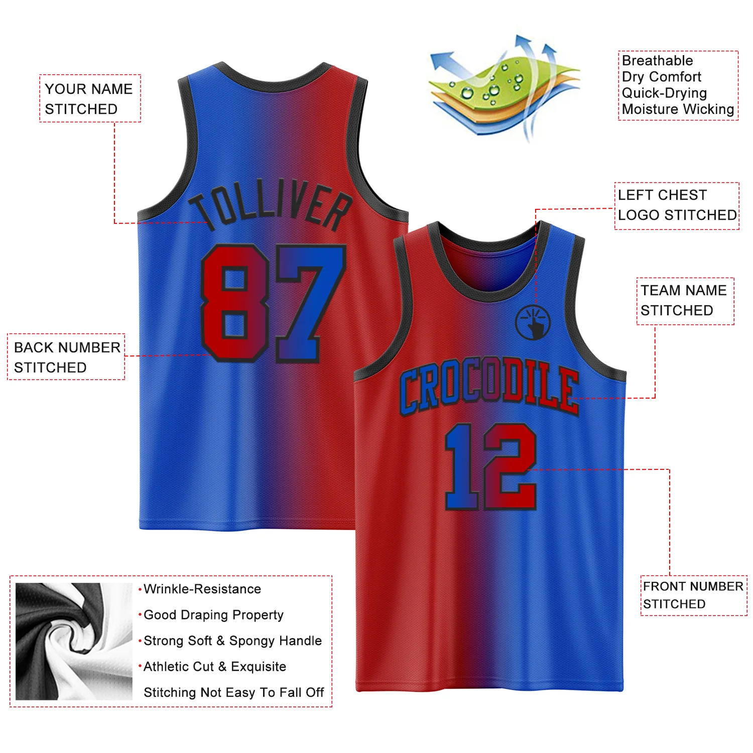 Custom Thunder Blue Red-Black Authentic Gradient Fashion Basketball Jersey