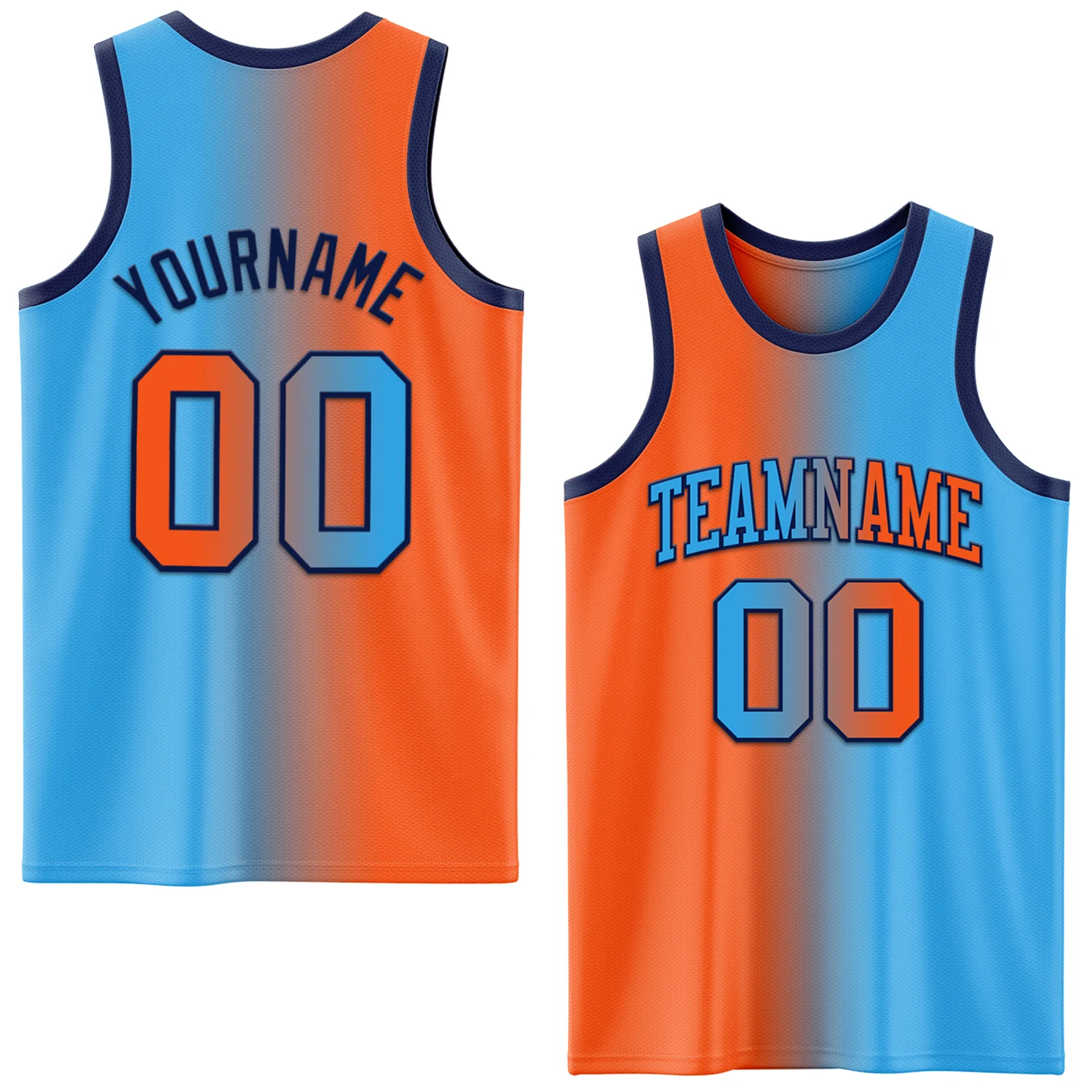 Custom Sky Blue Orange-Navy Authentic Gradient Fashion Basketball Jersey