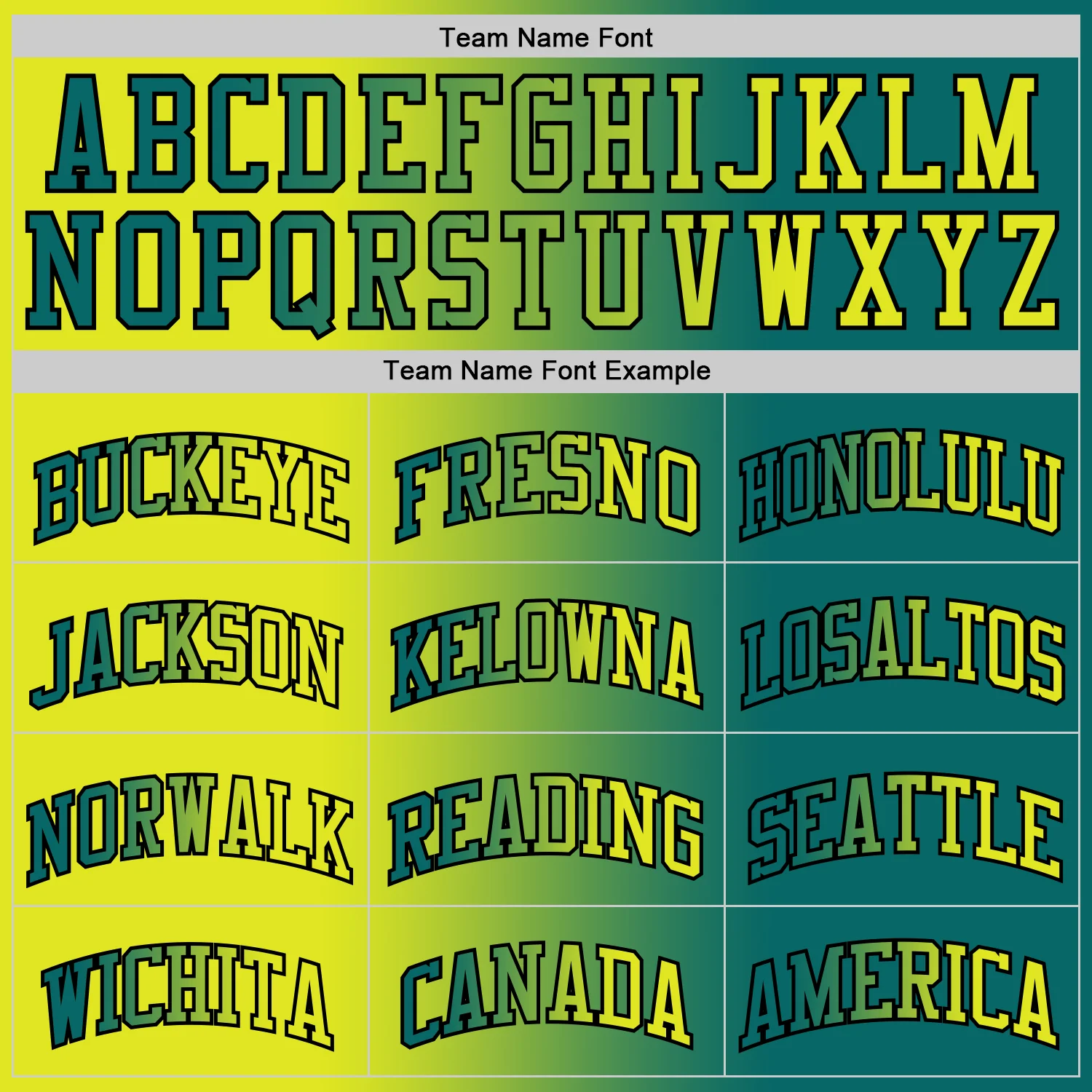 Custom Teal Neon Yellow-Black Authentic Gradient Fashion Basketball Jersey