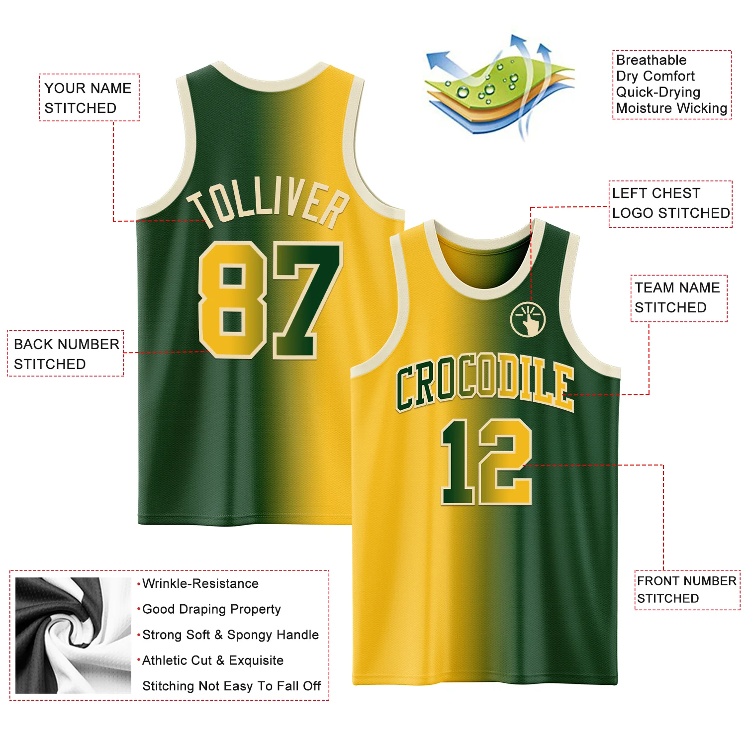 Custom Green Old Gold-Cream Authentic Gradient Fashion Basketball Jersey
