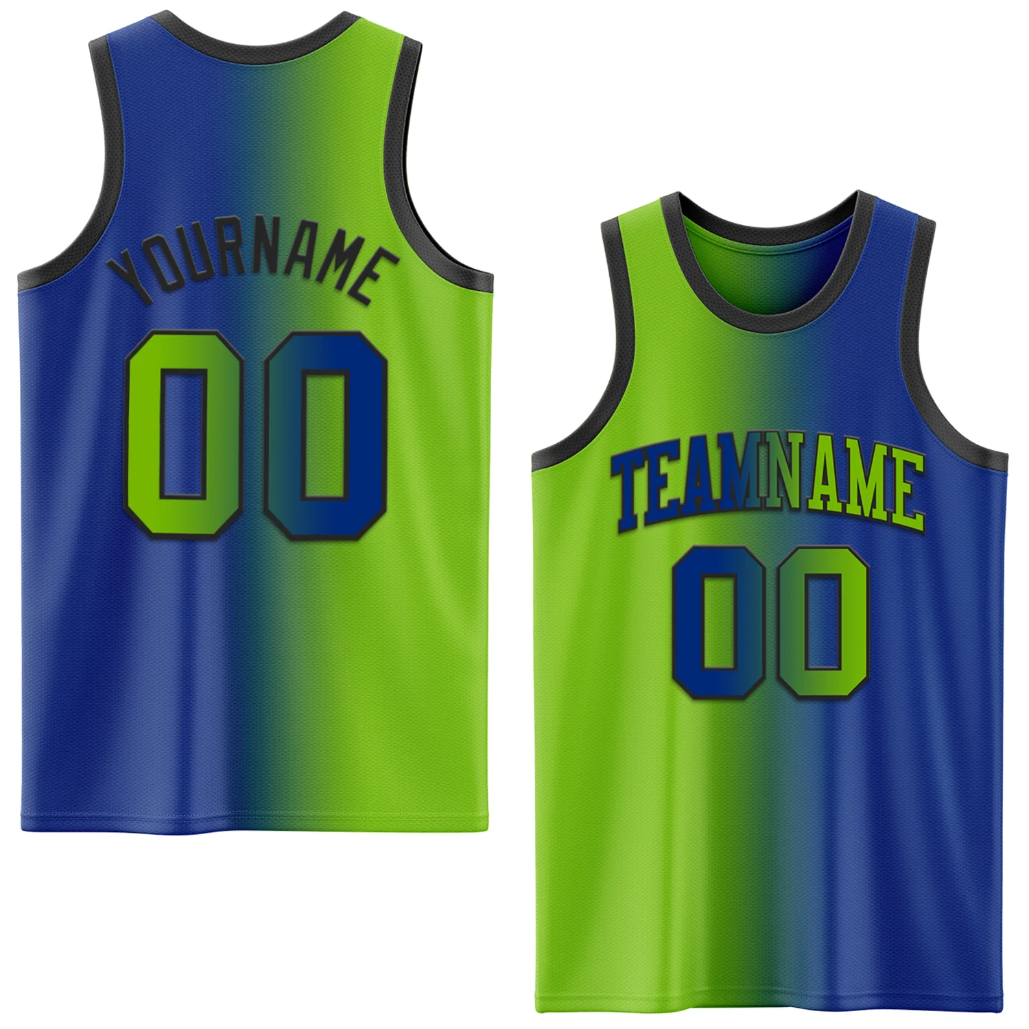 Custom Royal Neon Green-Black Authentic Gradient Fashion Basketball Jersey