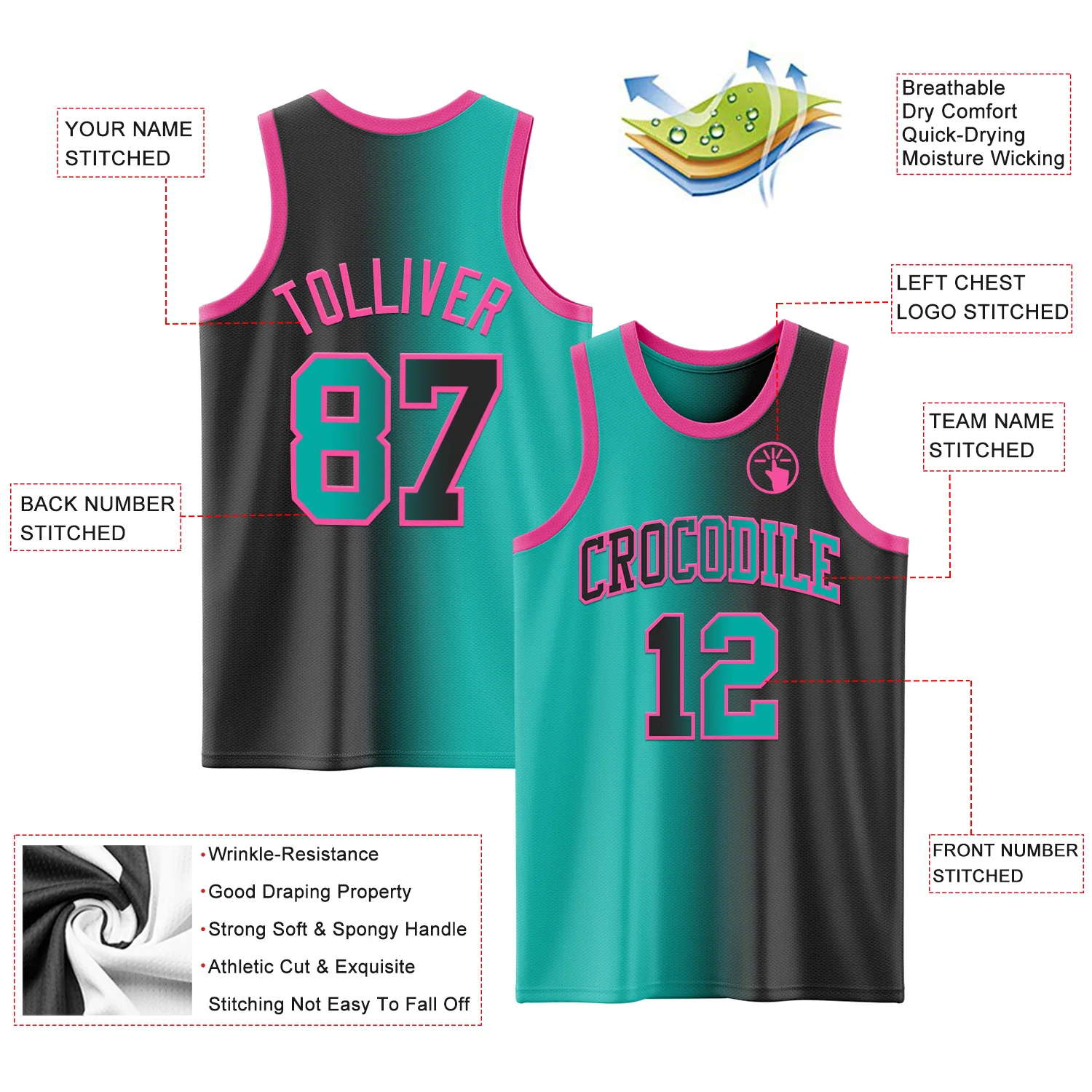 Custom Black Teal-Pink Authentic Gradient Fashion Basketball Jersey