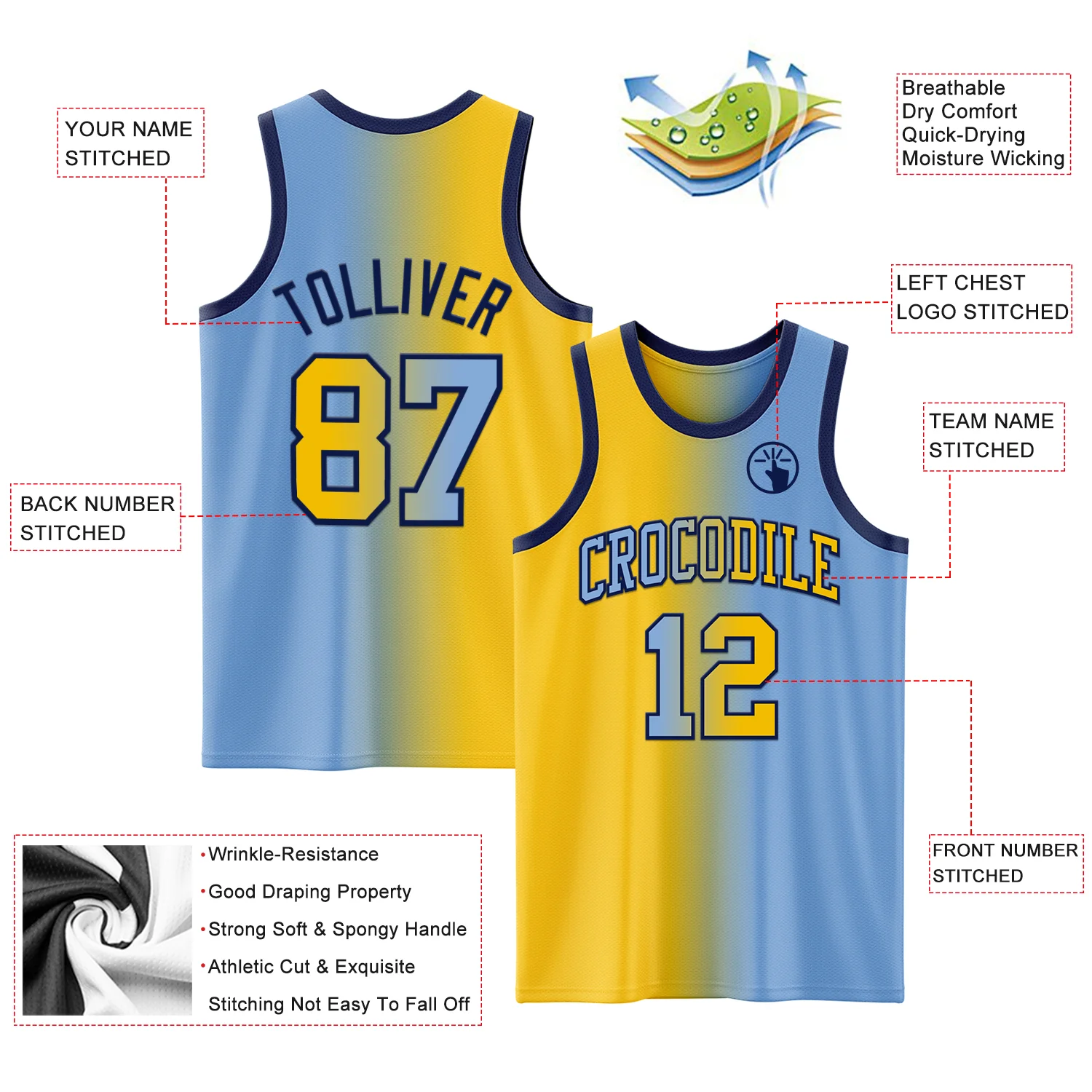 Custom Light Blue Yellow-Navy Authentic Gradient Fashion Basketball Jersey