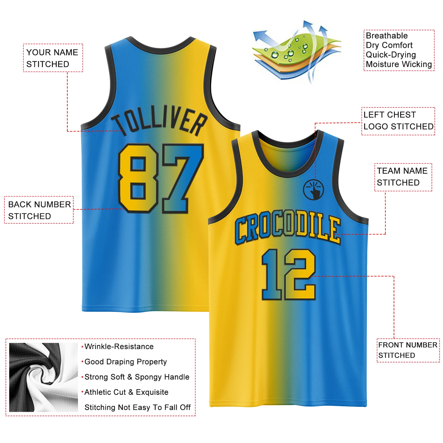 Custom Powder Blue Yellow-Black Authentic Gradient Fashion Basketball Jersey