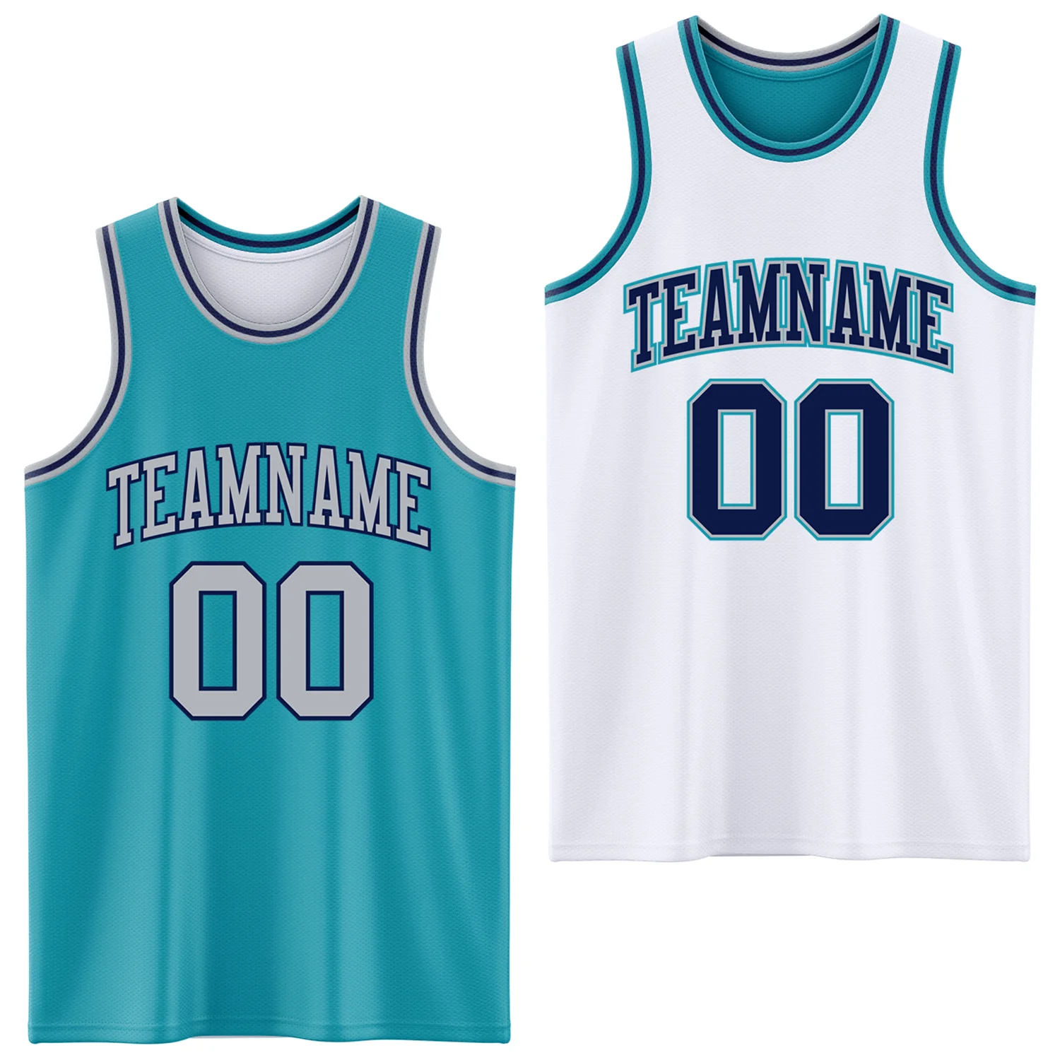 Custom Reversible Teal Gray-Navy Double Side Sublimation Basketball Suit Jersey
