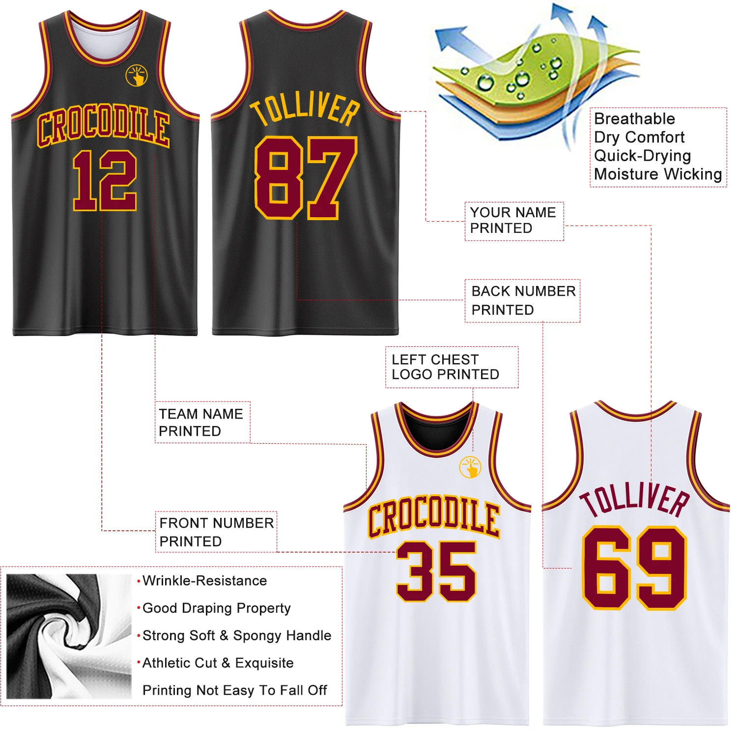 Custom Reversible Black Maroon-Gold Double Side Sublimation Basketball Suit Jersey