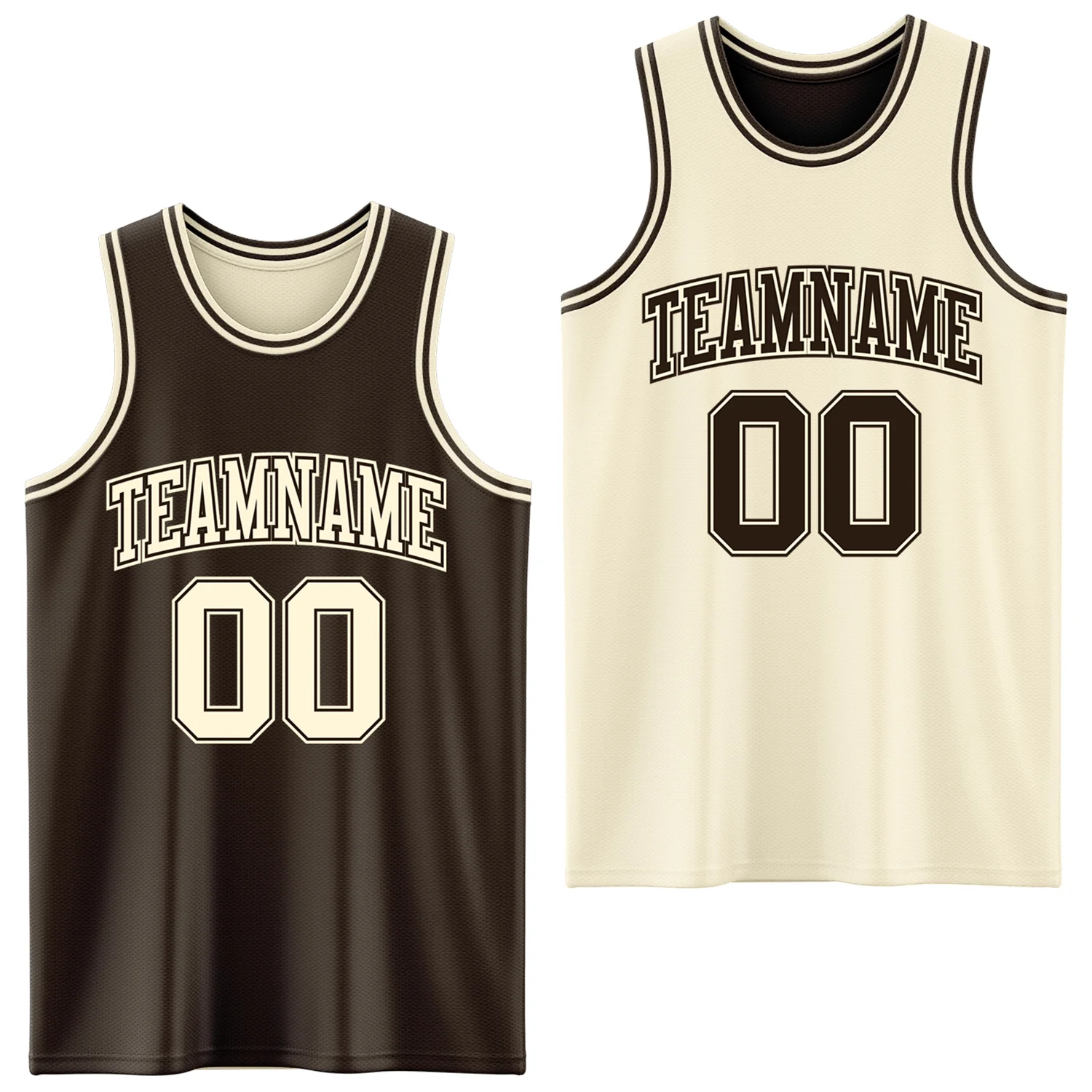 Custom Reversible Brown Cream Double Side Sublimation Basketball Suit Jersey