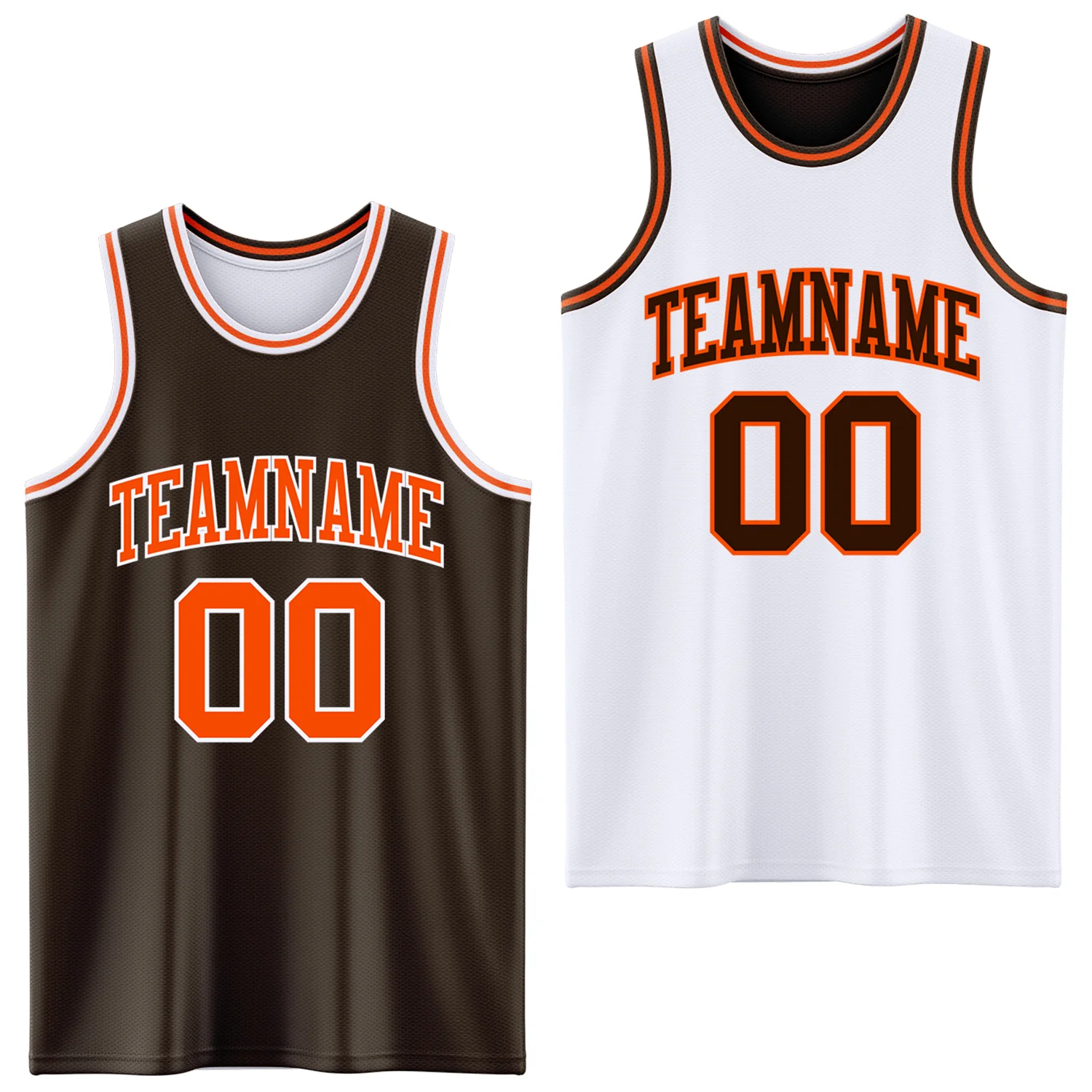 Custom Brown Orange-White Reversible Double Side Sublimation Basketball Suit Jersey