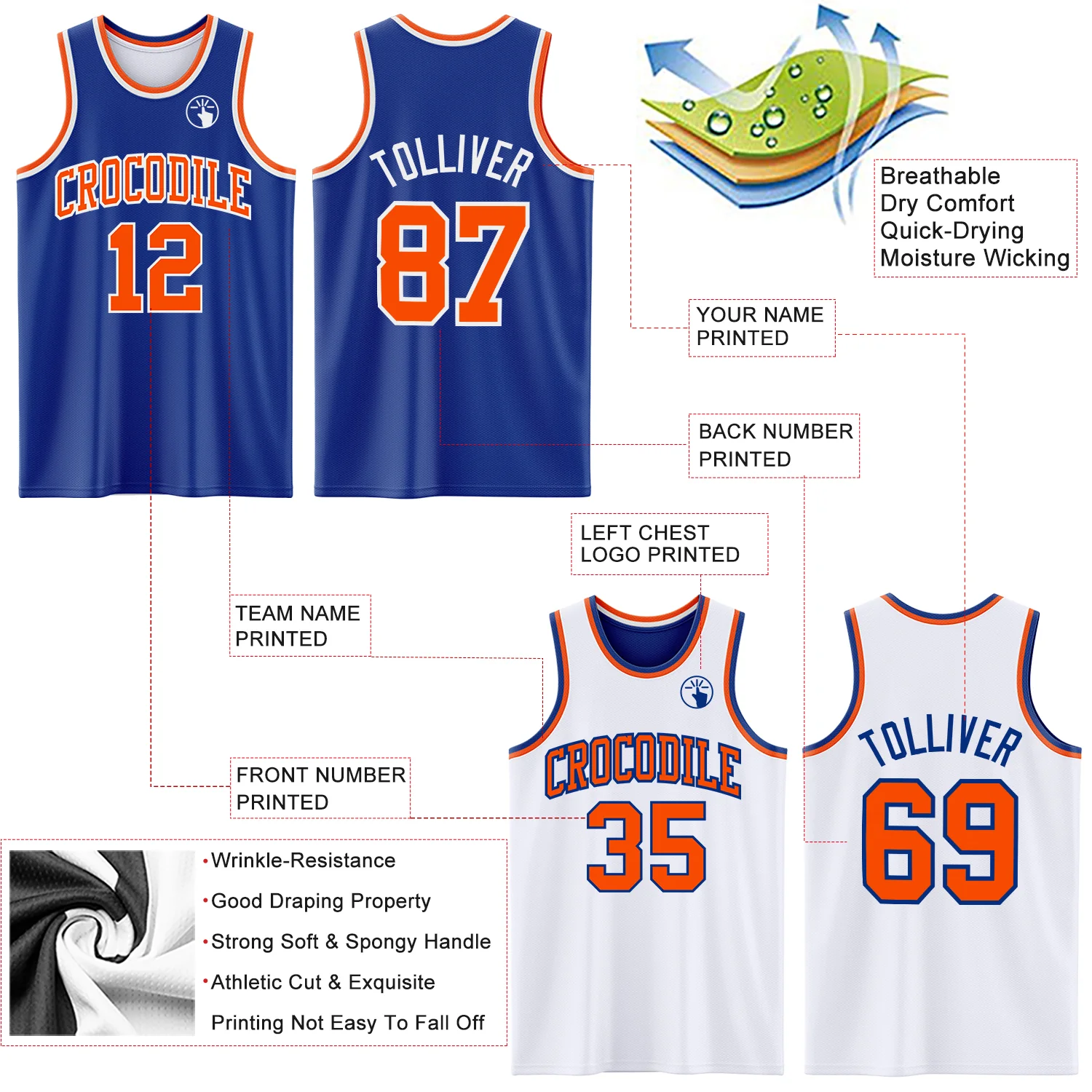 Custom Royal Orange-White Reversible Double Side Sublimation Basketball Suit Jersey