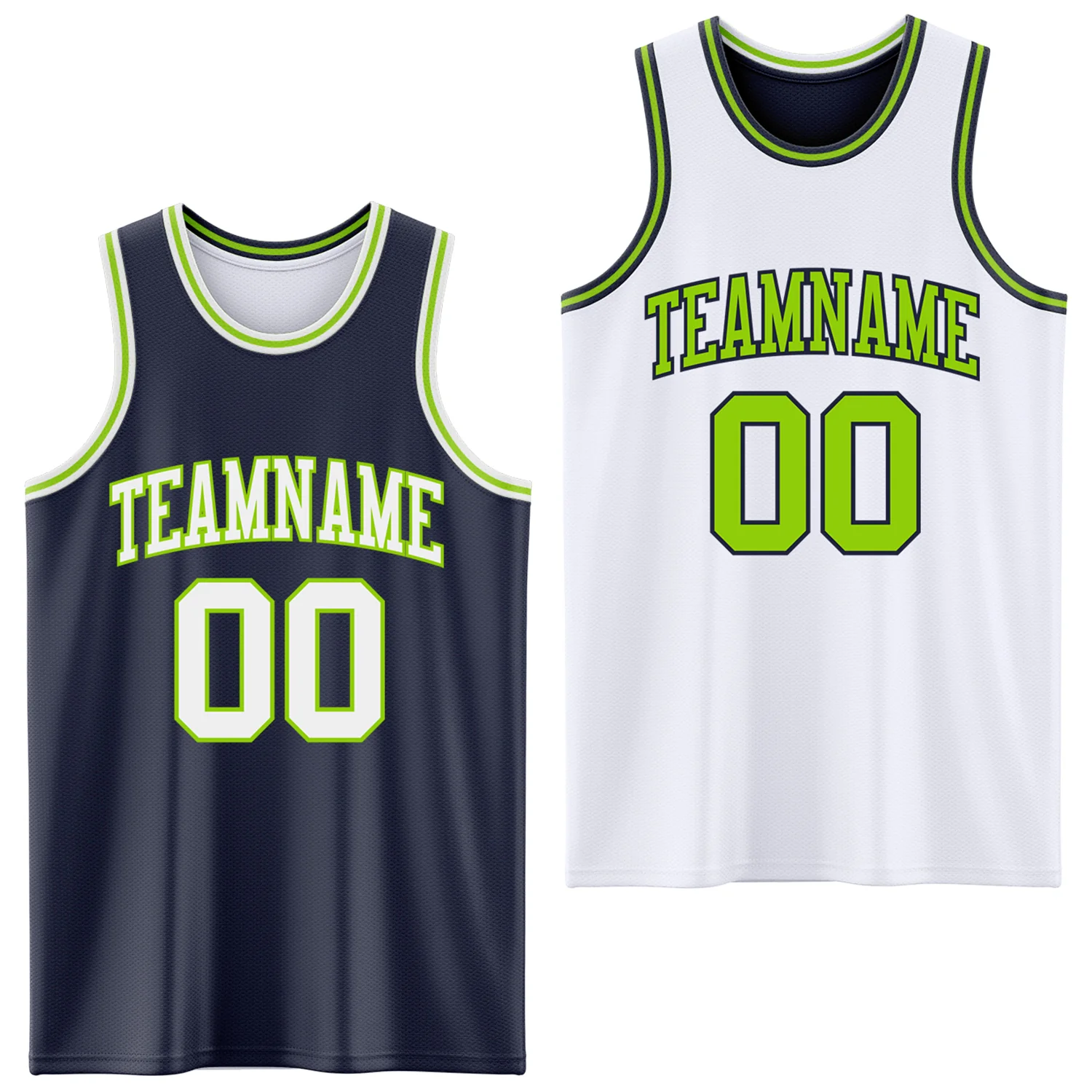 Custom Navy White-Neon Green Reversible Double Side Sublimation Basketball Suit Jersey