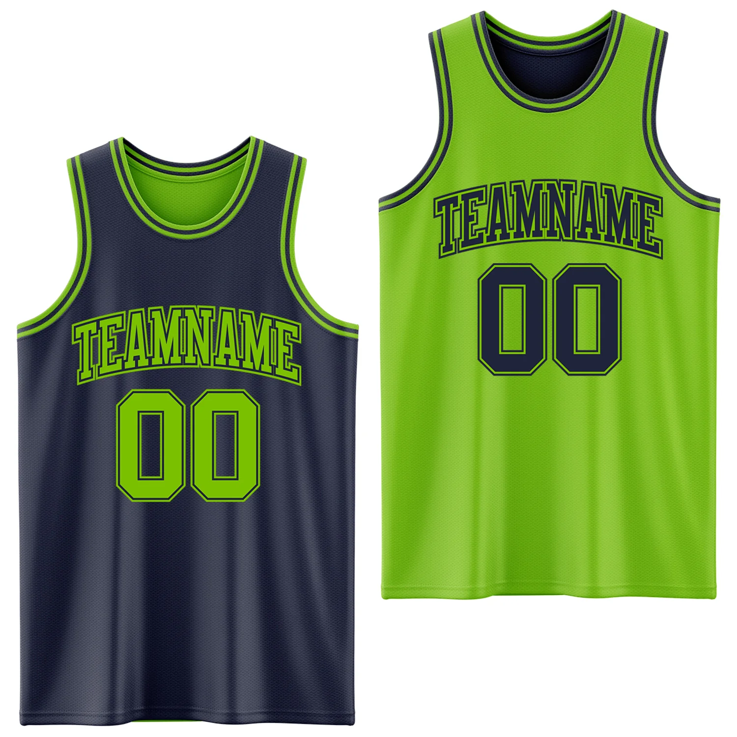 Custom Navy Neon Green Reversible Double Side Sublimation Basketball Suit Jersey