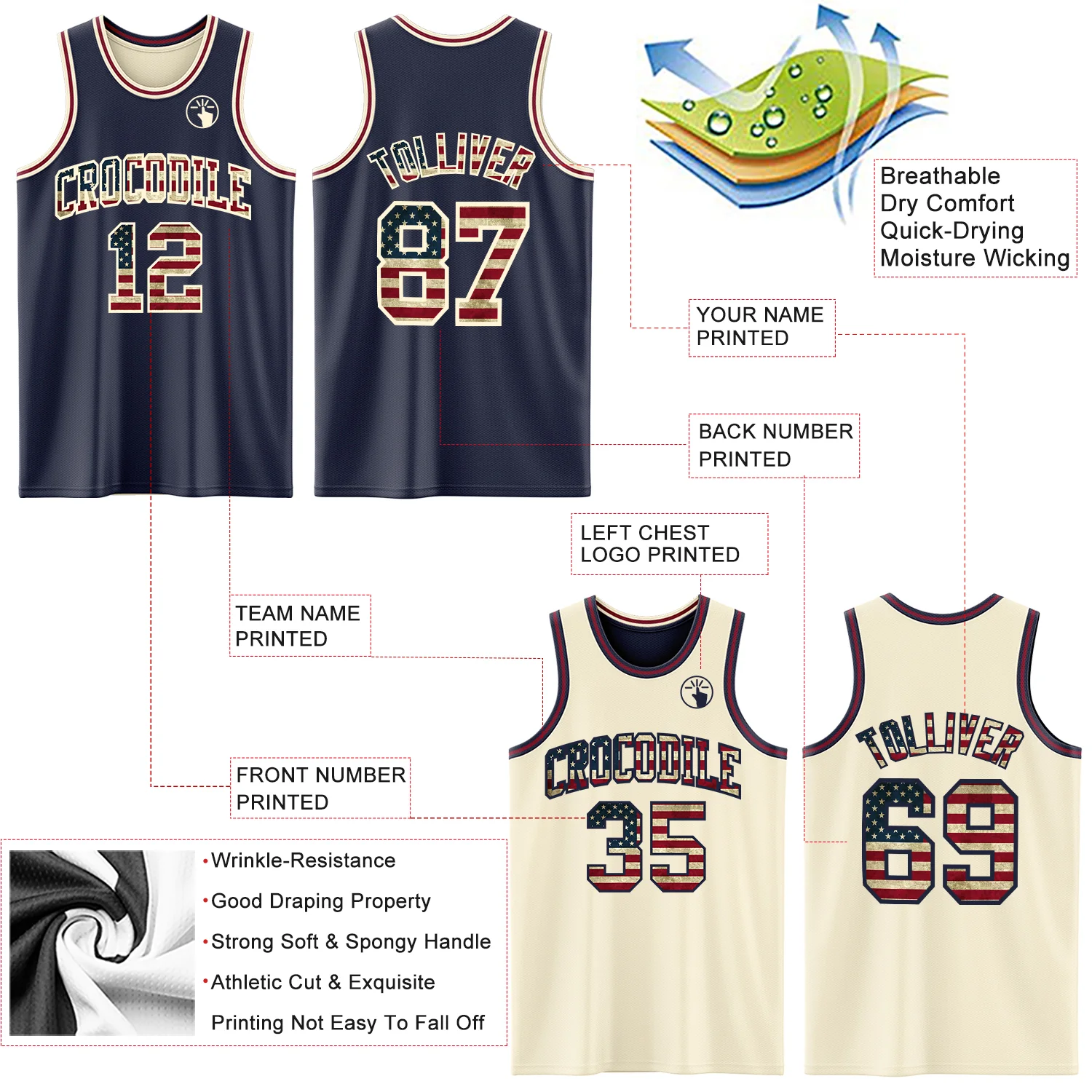 Custom Navy Vintage USA Flag Cream-Maroon Reversible Double Side Sublimation Basketball Suit Jersey