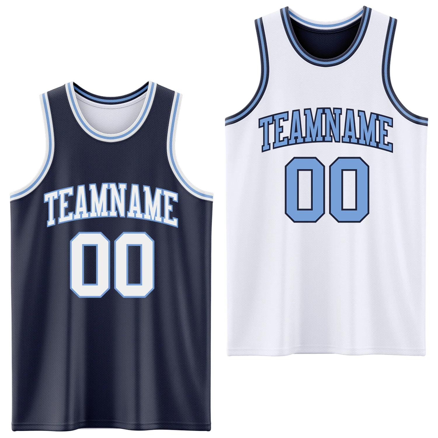 Custom Navy White-Light Blue Reversible Double Side Sublimation Basketball Suit Jersey
