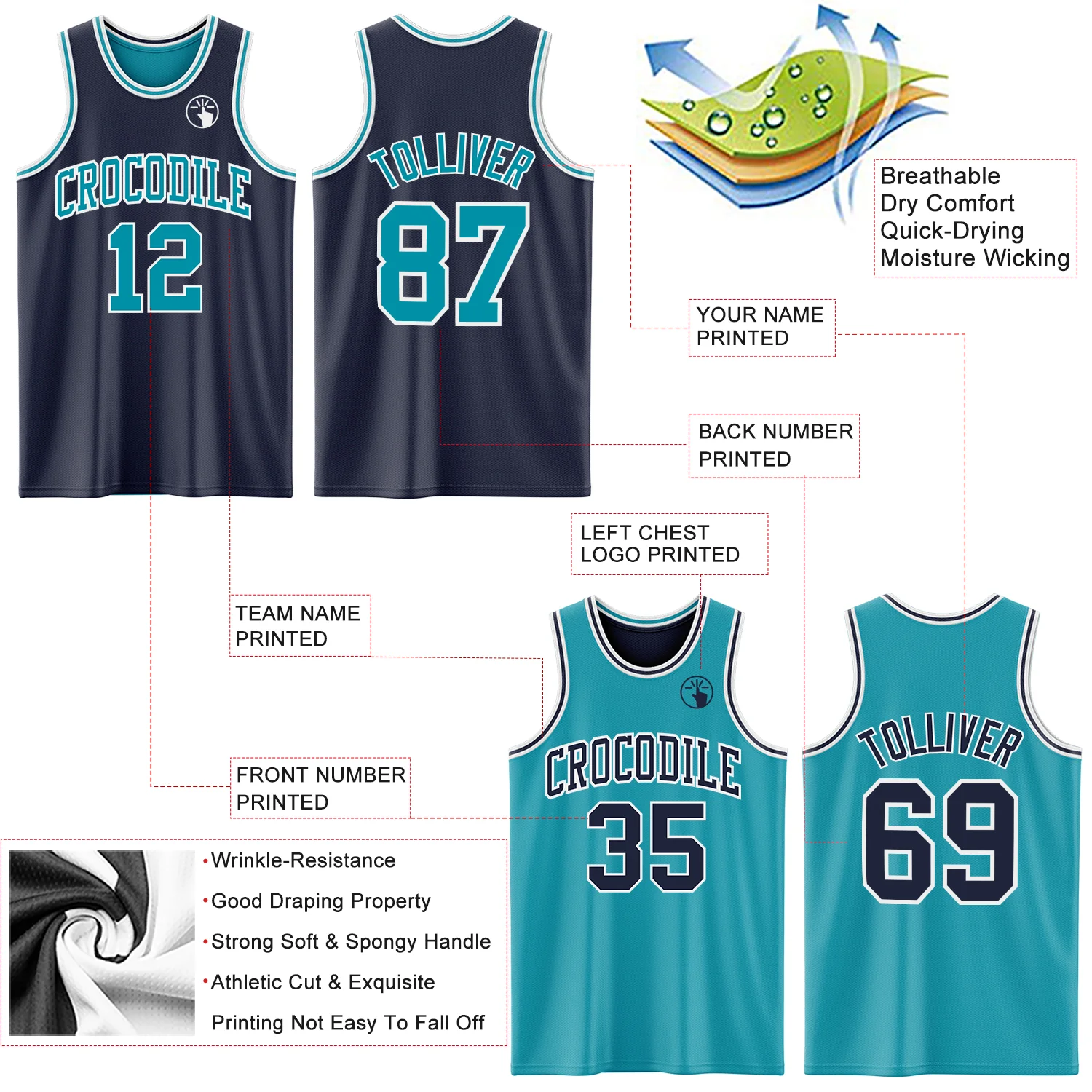 Custom Navy Teal-White Reversible Double Side Sublimation Basketball Suit Jersey