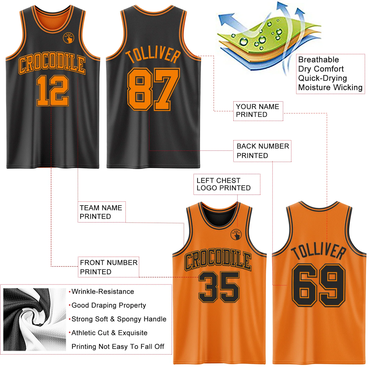 Custom Reversible Black Bay Orange Double Side Sublimation Basketball Suit Jersey
