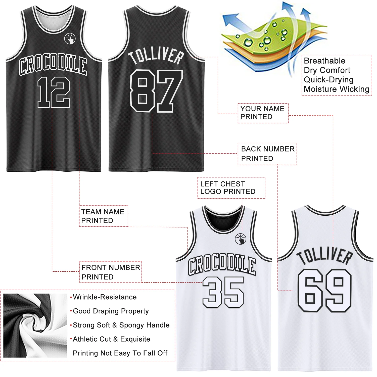 Custom Reversible Black White Double Side Sublimation Basketball Suit Jersey