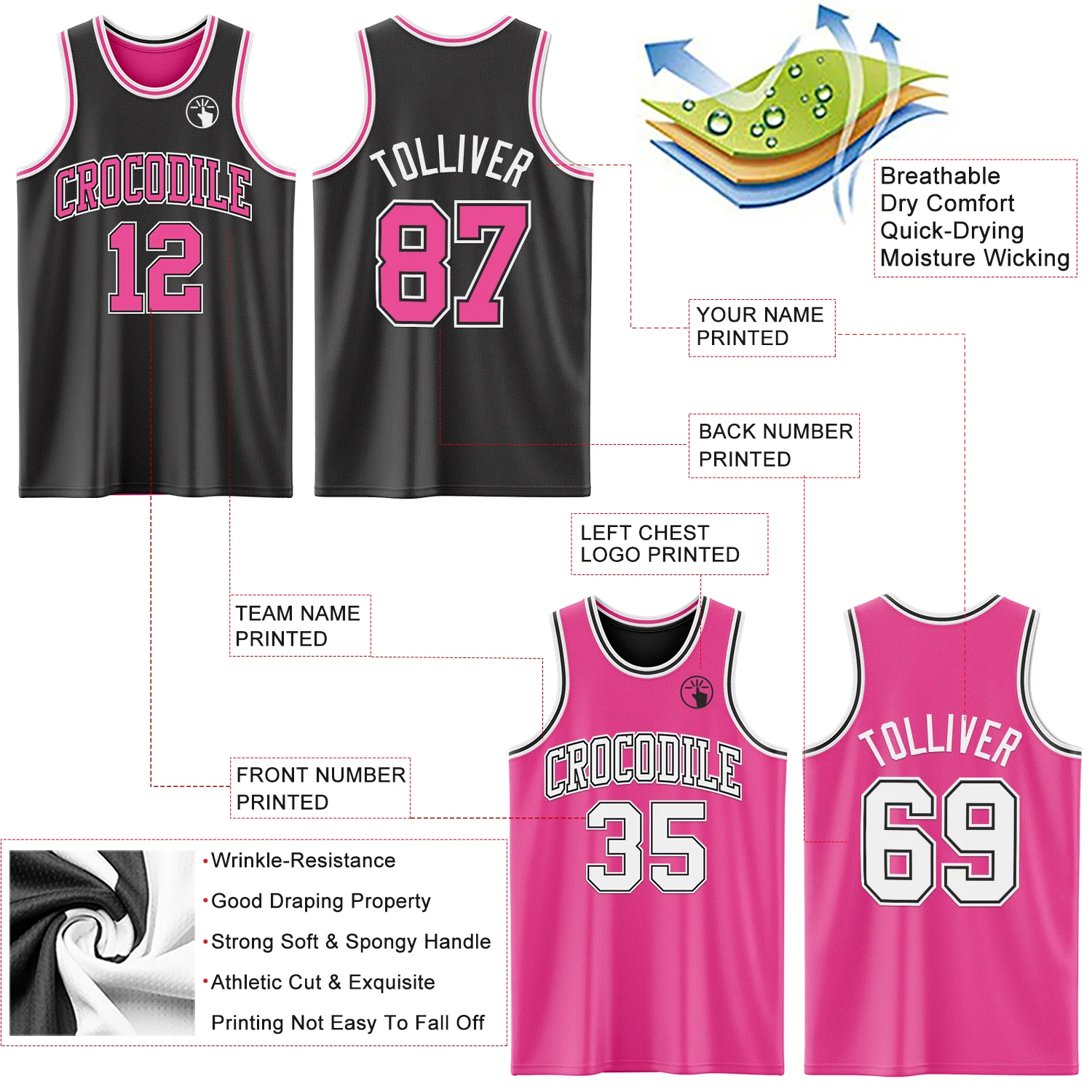 Custom Reversible Black Pink-White Double Side Sublimation Basketball Suit Jersey