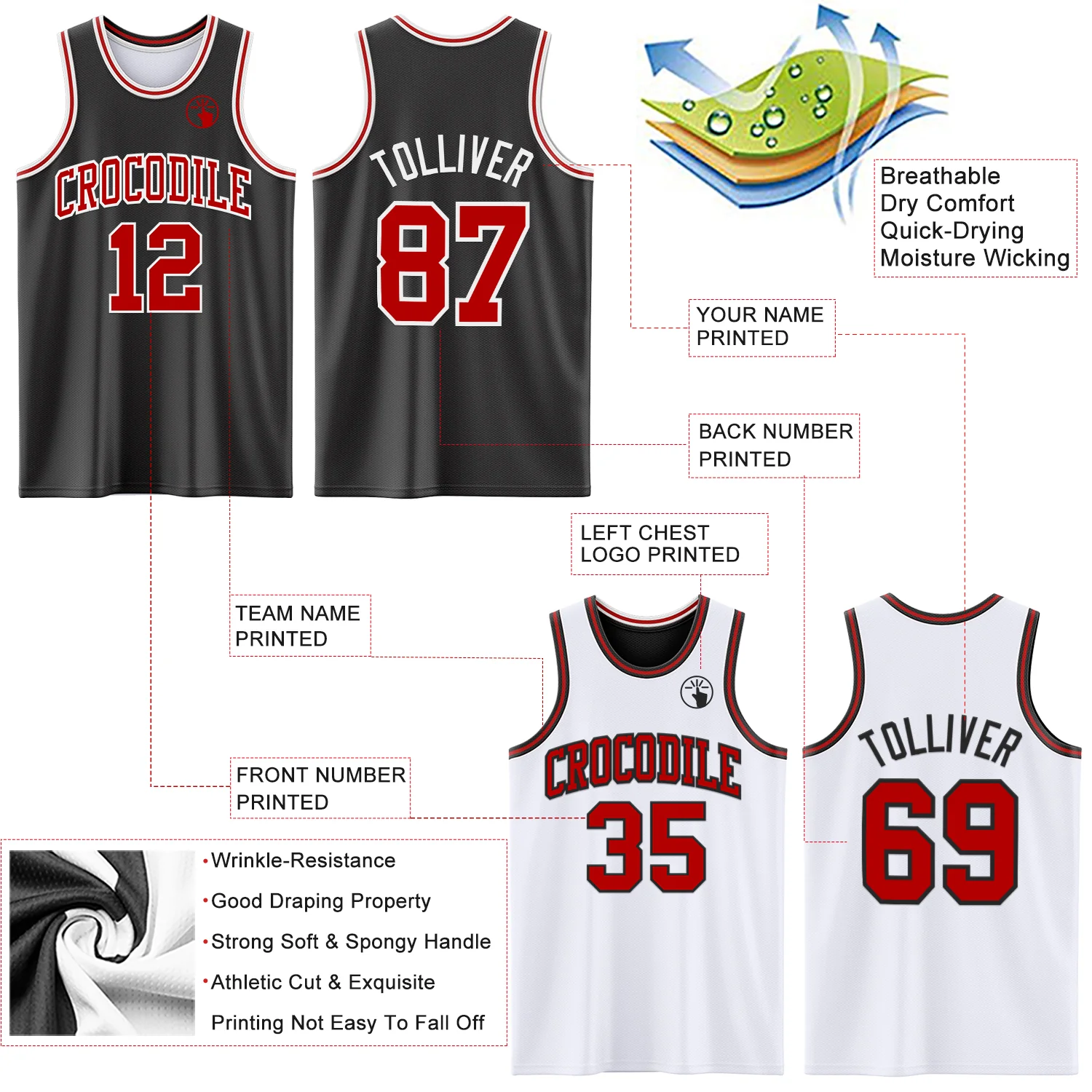 Custom Reversible Black Red-White Double Side Sublimation Basketball Suit Jersey