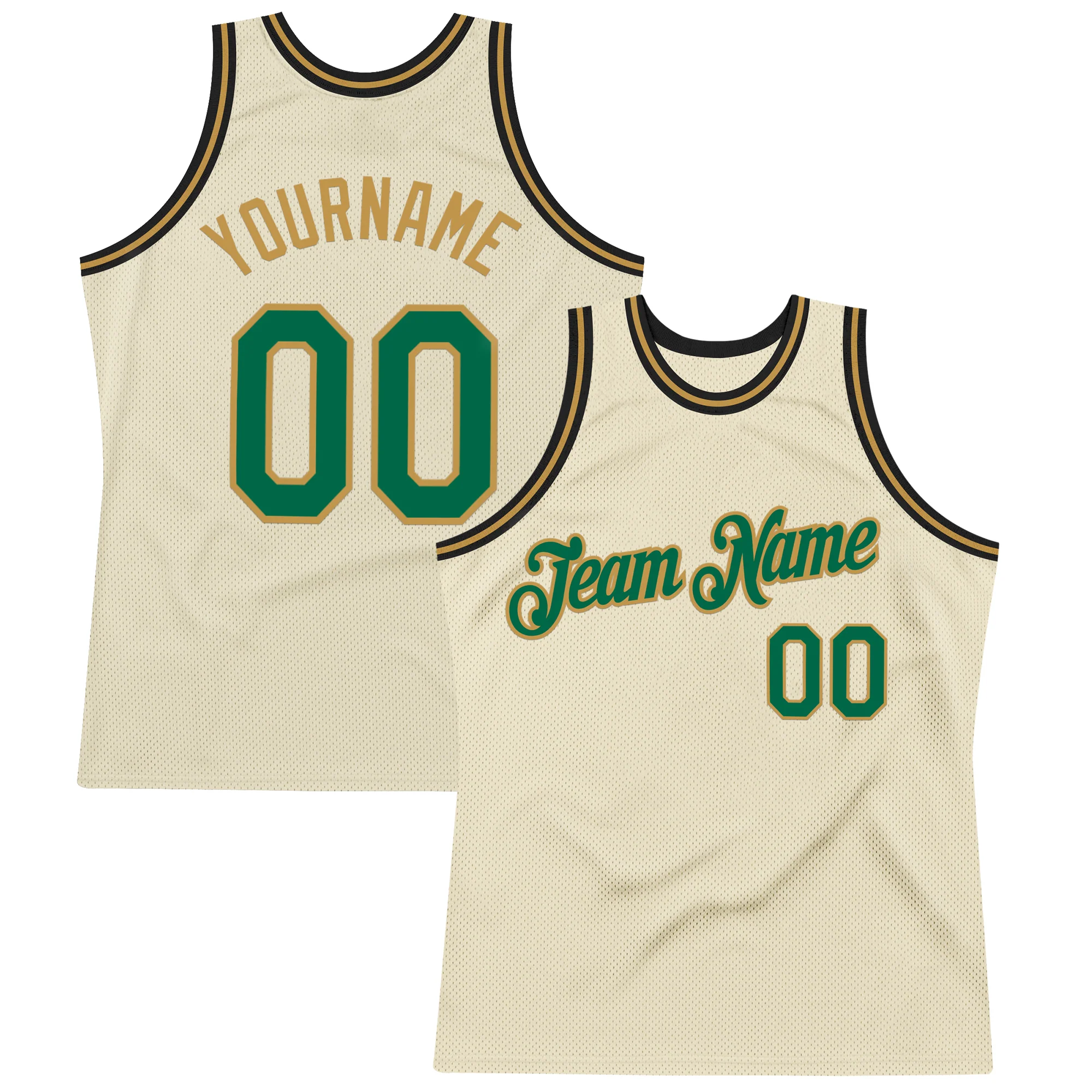 Custom Cream Kelly Green Old Gold-Black Authentic Throwback Basketball Jersey