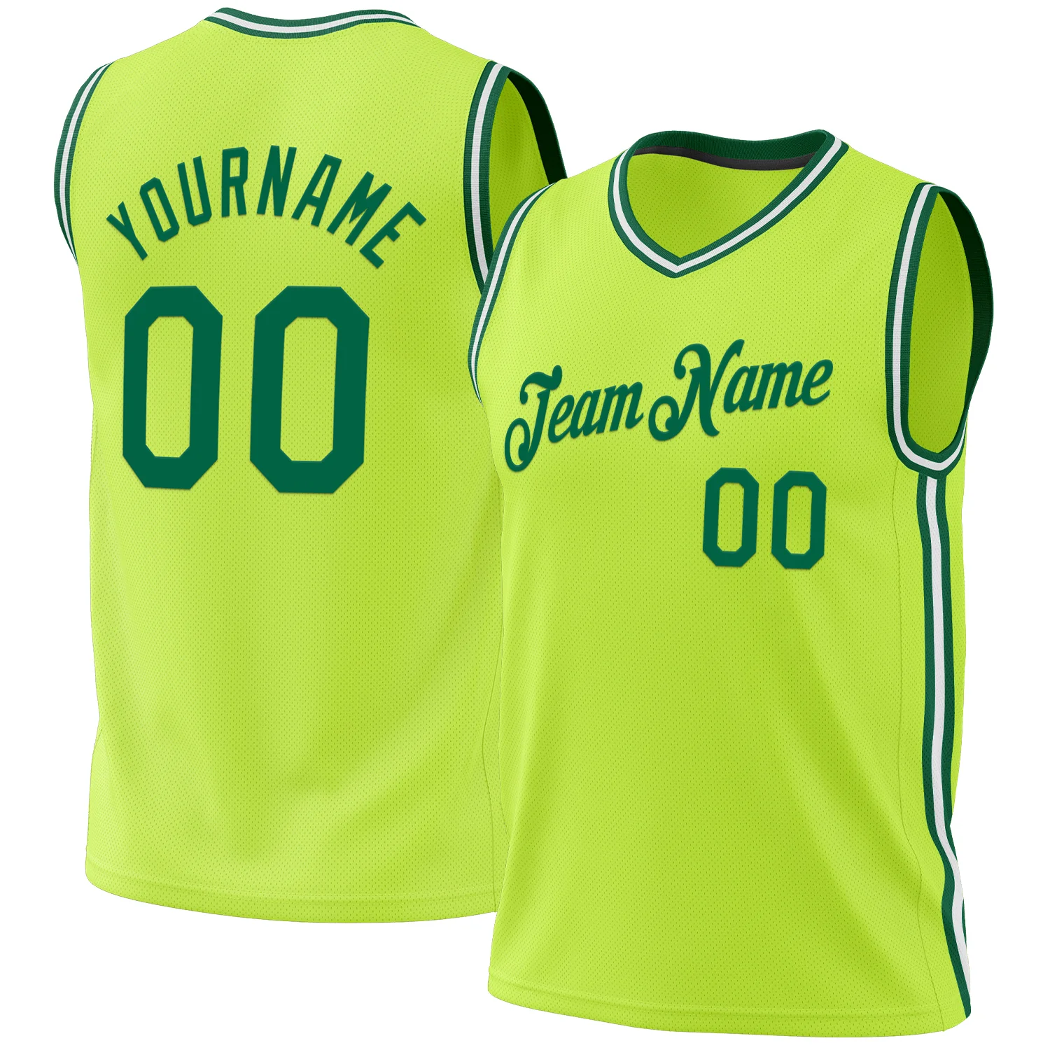 Custom Neon Green Kelly Green-White Authentic Throwback Basketball Jersey