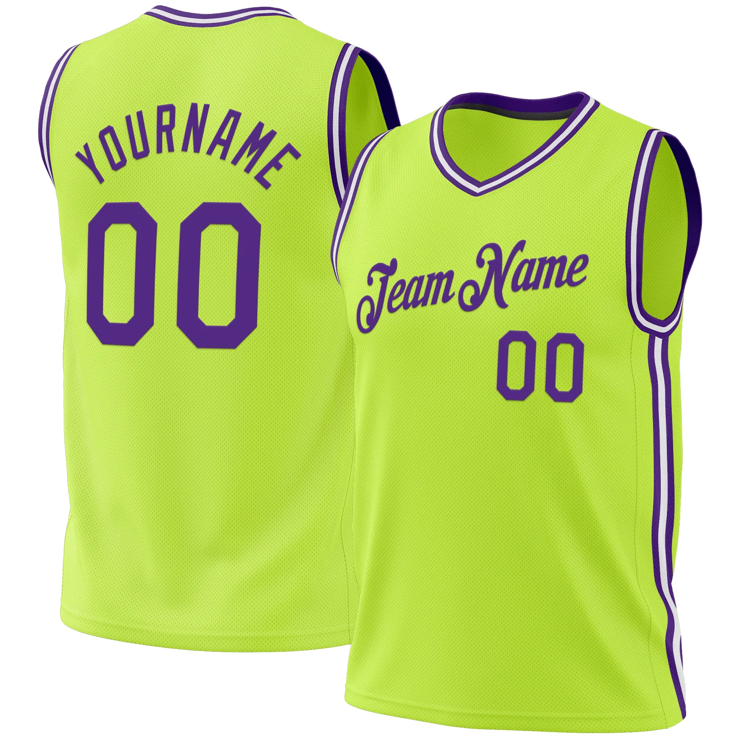 Custom Neon Green Purple-White Authentic Throwback Basketball Jersey