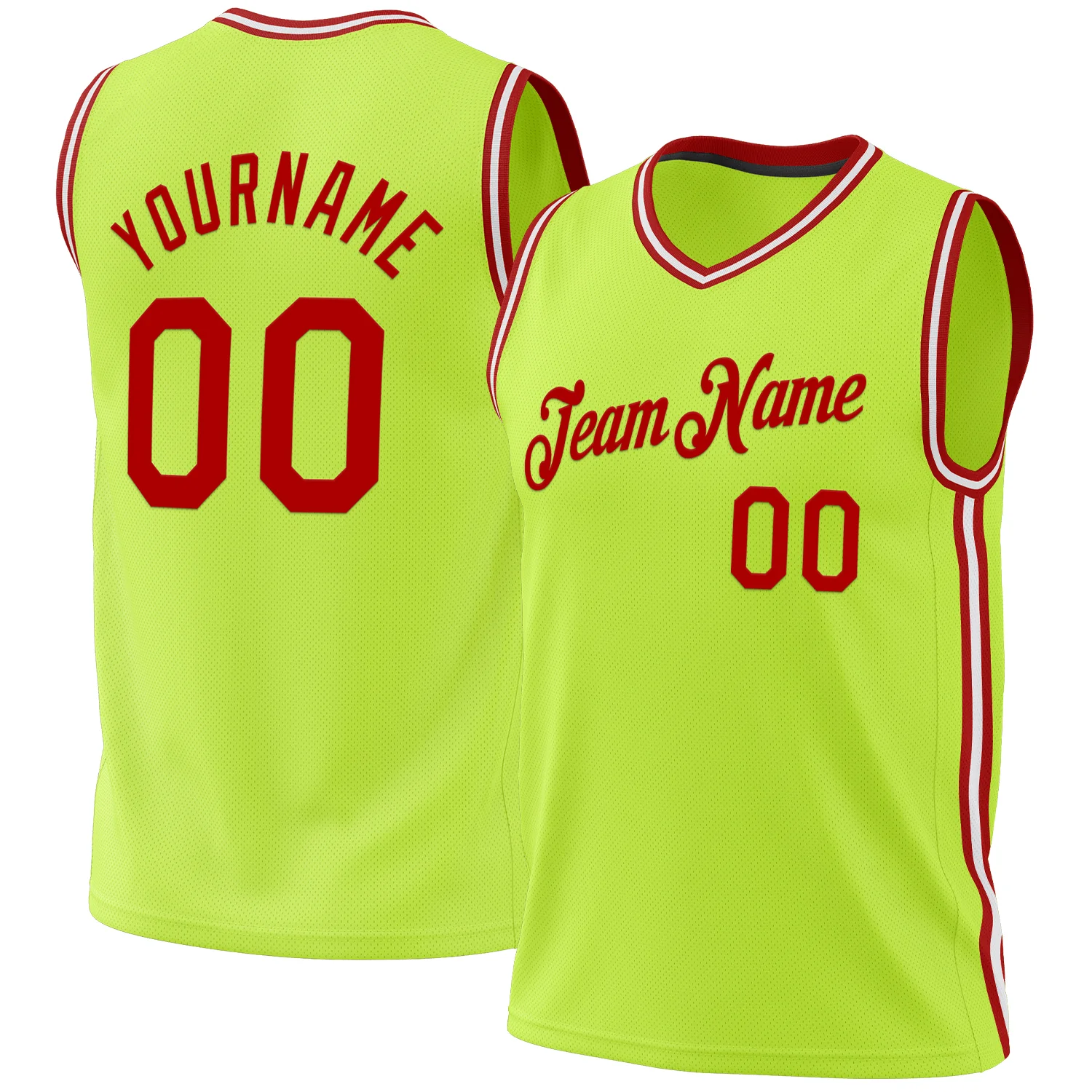 Custom Neon Green Red-White Authentic Throwback Basketball Jersey