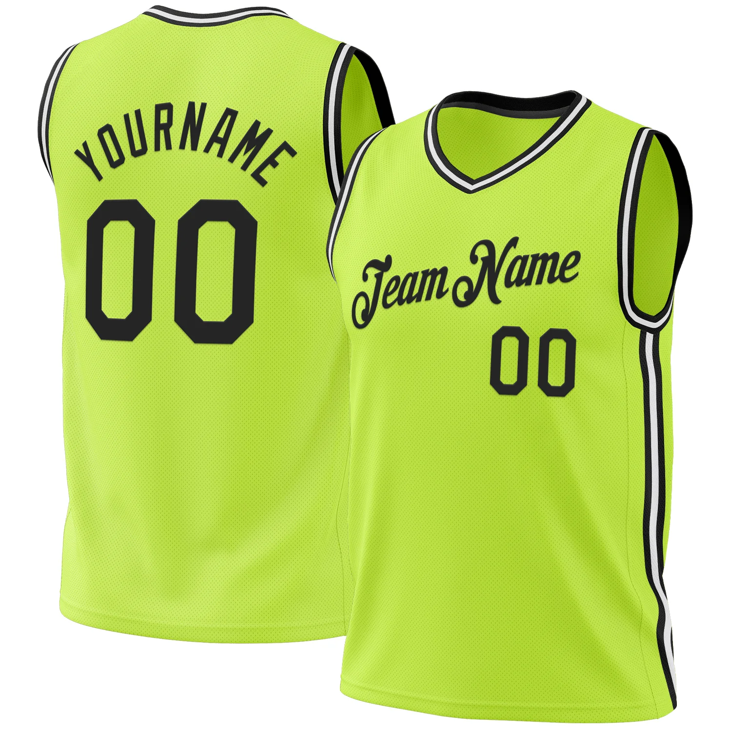 Custom Neon Green Black-White Authentic Throwback Basketball Jersey