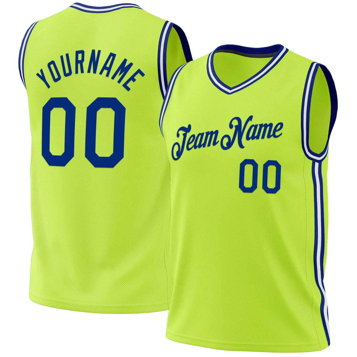 Custom Neon Green Royal-White Authentic Throwback Basketball Jersey