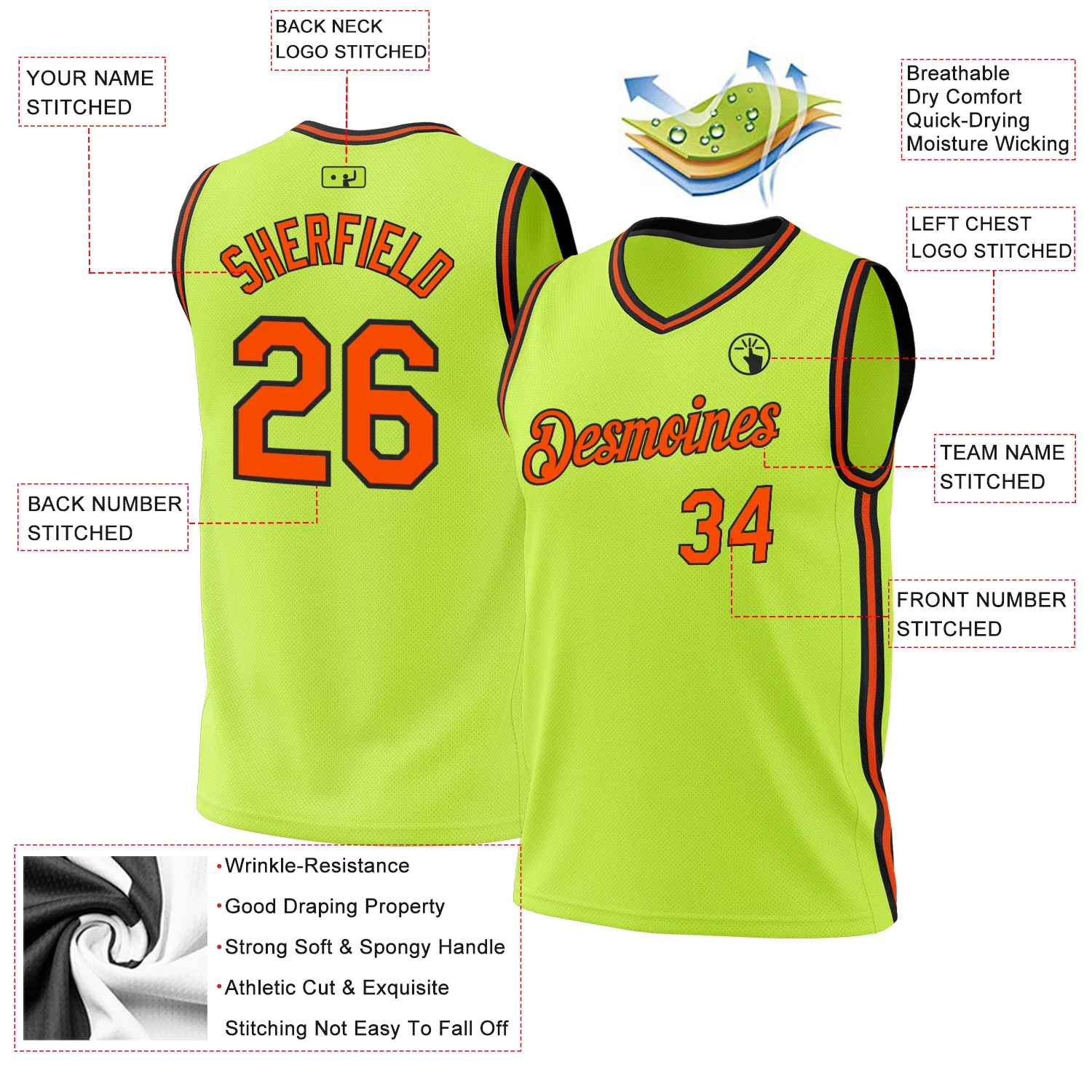 Custom Neon Green Orange-Black Authentic Throwback Basketball Jersey