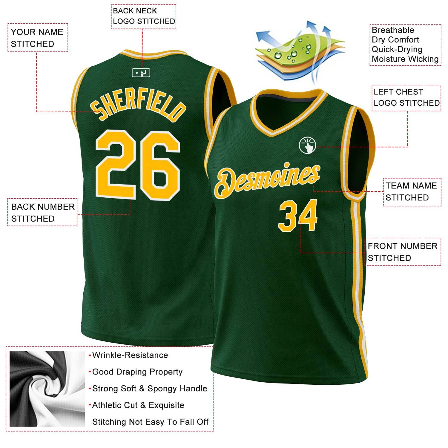 Custom Hunter Green Gold-White Authentic Throwback Basketball Jersey