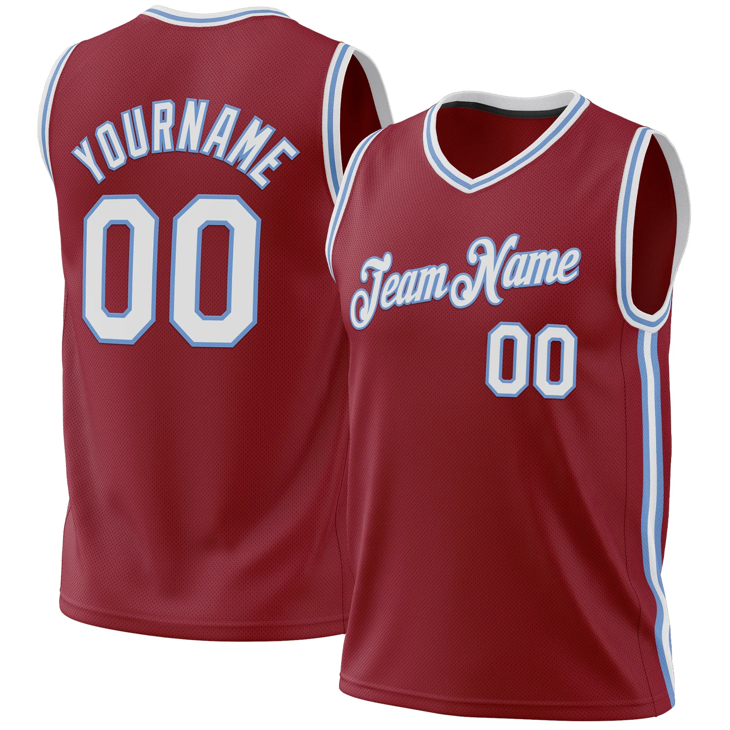 Custom Maroon White-Light Blue Authentic Throwback Basketball Jersey