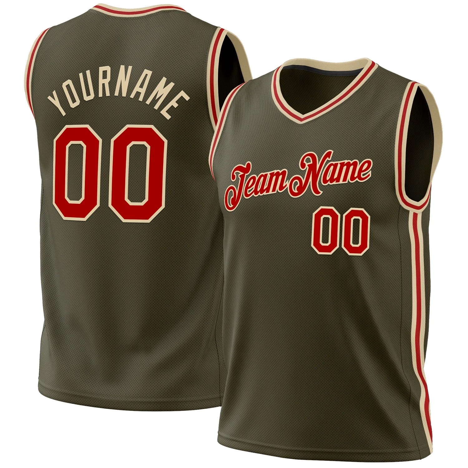 Custom Olive Red-Cream Authentic Throwback Salute To Service Basketball Jersey