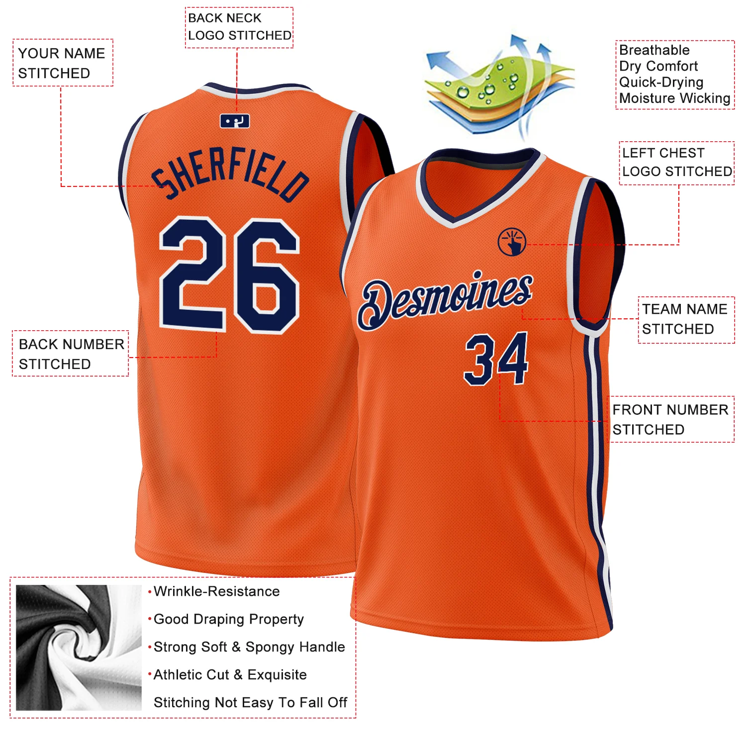 Custom Orange Navy-White Authentic Throwback Basketball Jersey