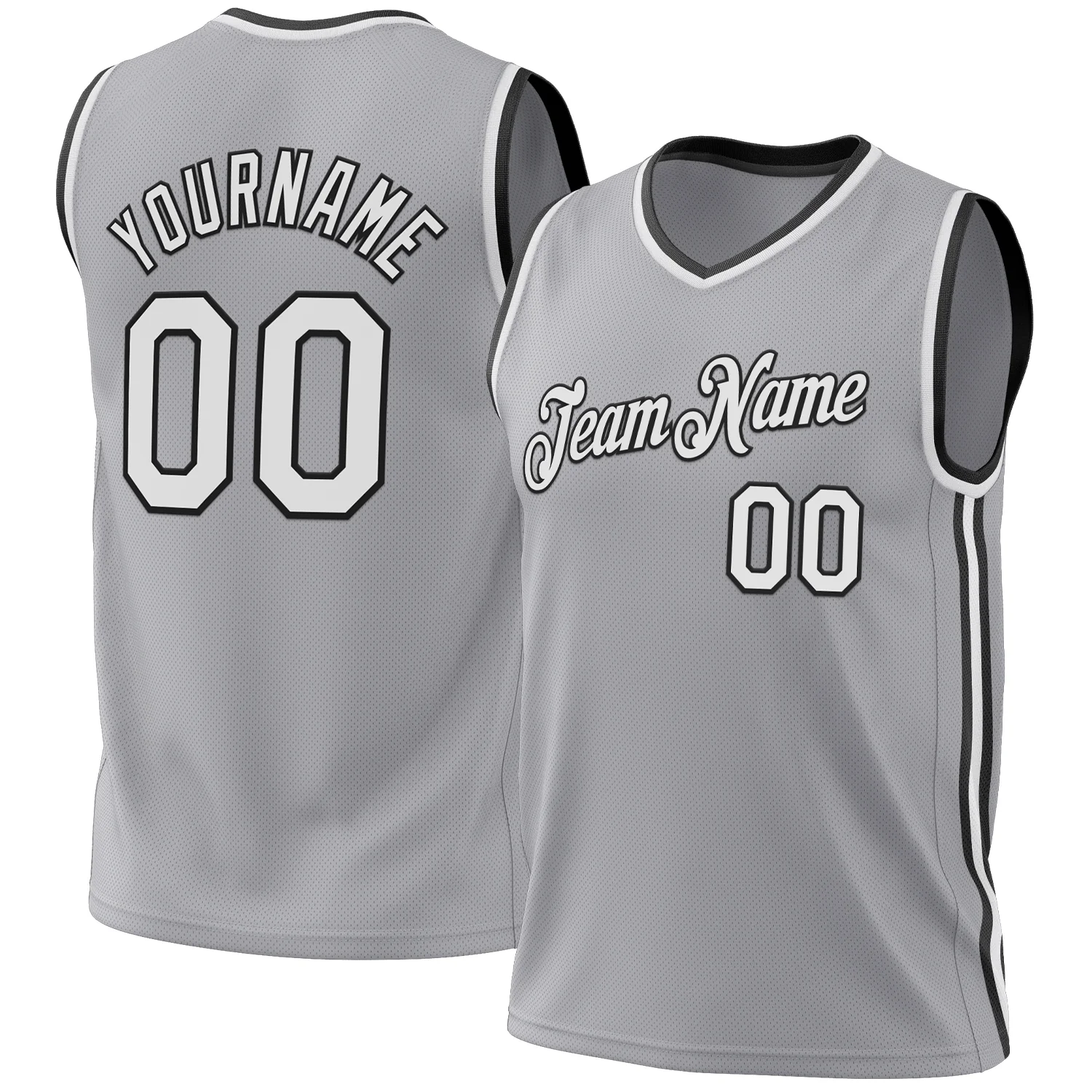 Custom Gray White-Black Authentic Throwback Basketball Jersey