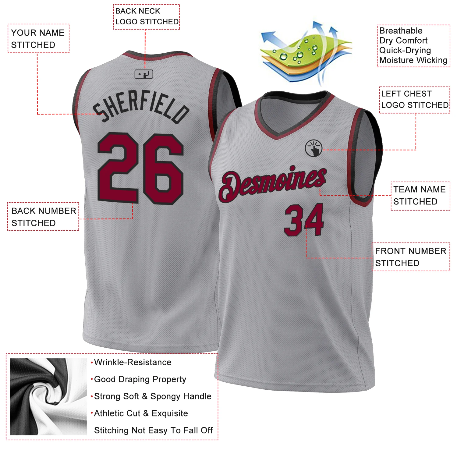 Custom Gray Maroon-Black Authentic Throwback Basketball Jersey