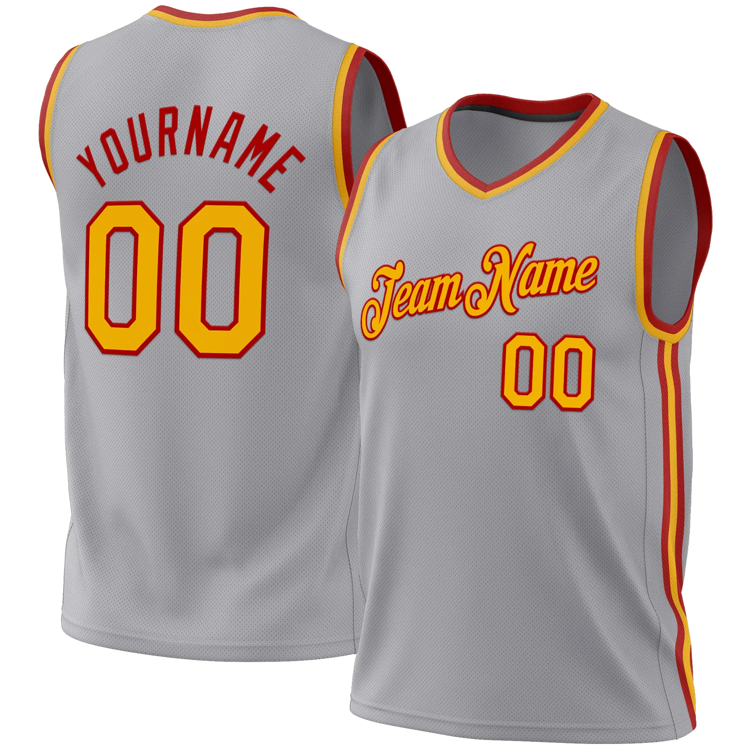 Custom Gray Gold-Red Authentic Throwback Basketball Jersey