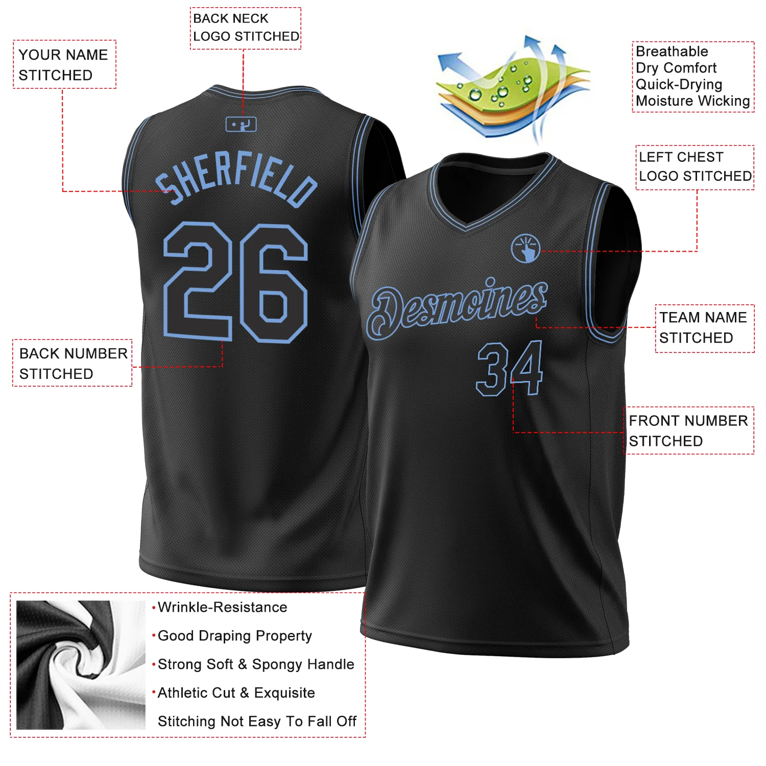 Custom Black Light Blue Authentic Throwback Basketball Jersey