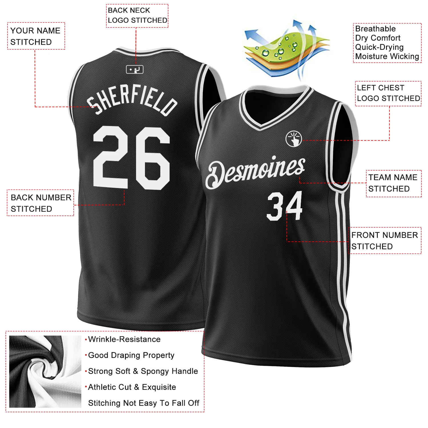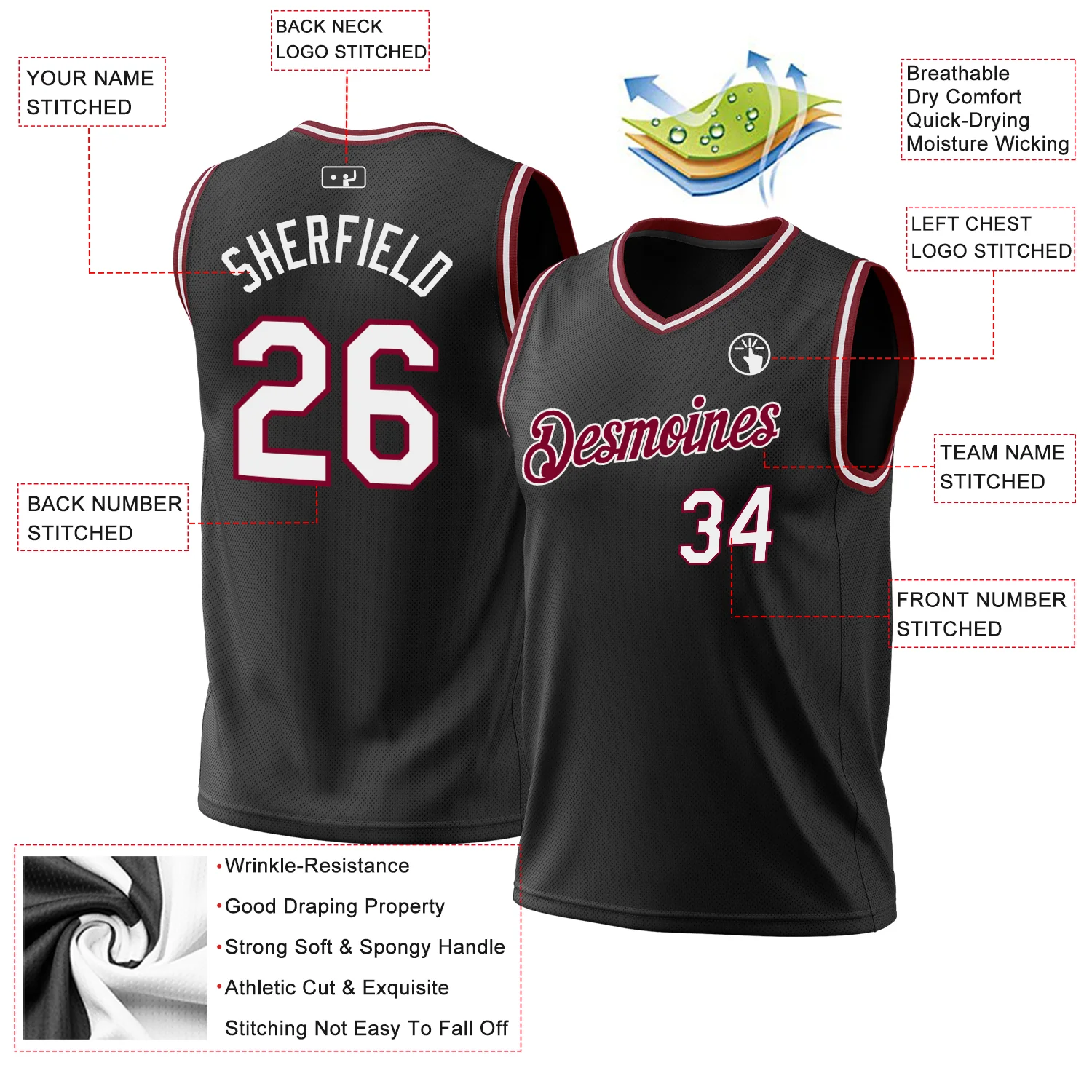 Custom Black White-Maroon Authentic Throwback Basketball Jersey