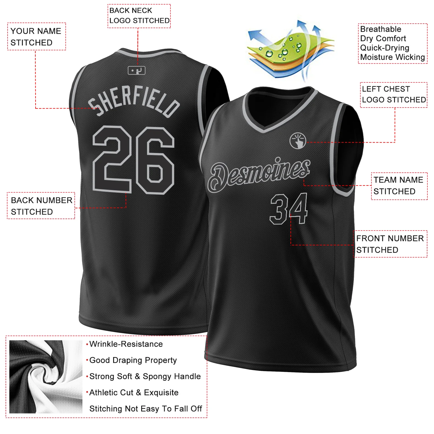 Custom Black Gray Authentic Throwback Basketball Jersey