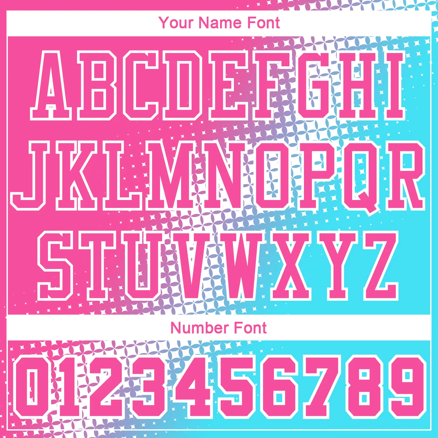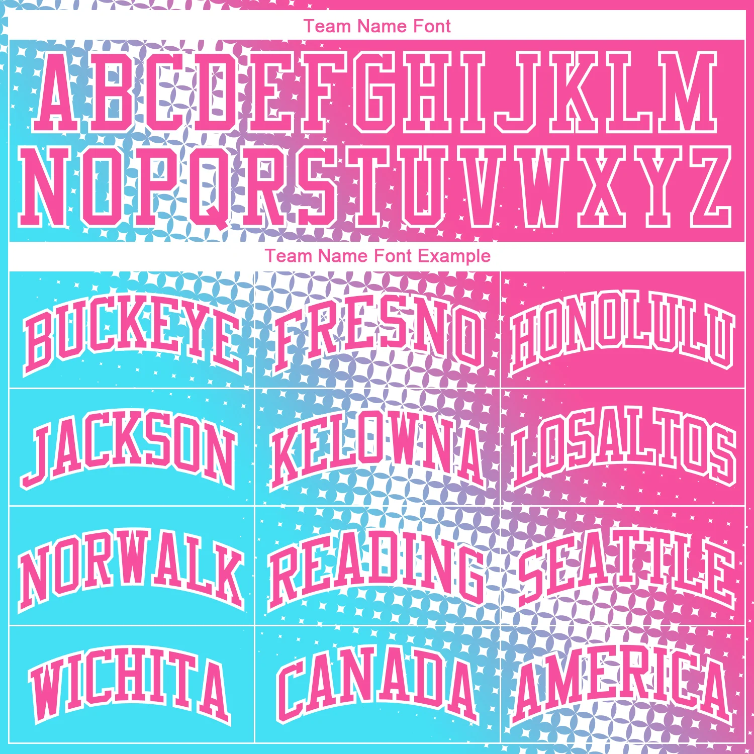 Custom Sky Blue Pink-White Gradient Two Tone Diamond Shape Round Neck Sublimation Basketball Suit Jersey