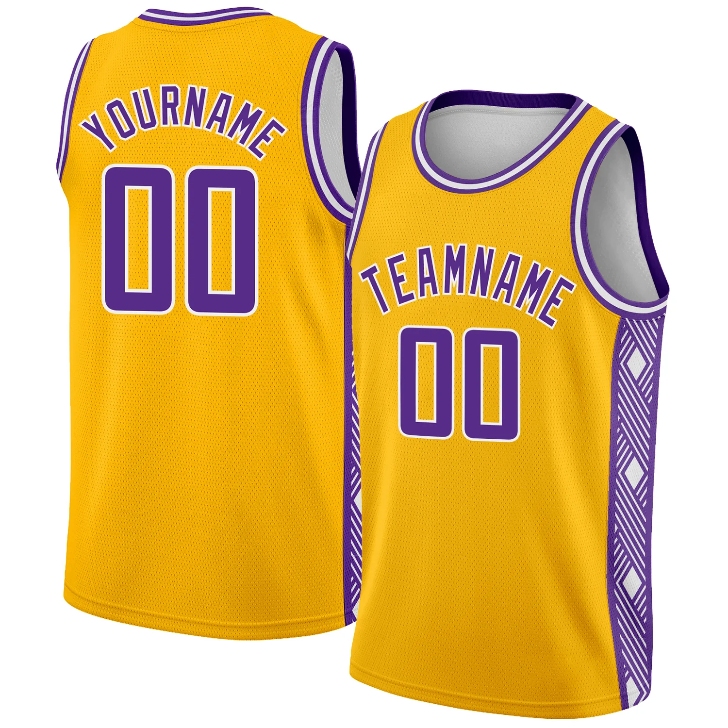 Custom Gold Purple-White Side Panel Abstract Lines Authentic City Edition Basketball Jersey
