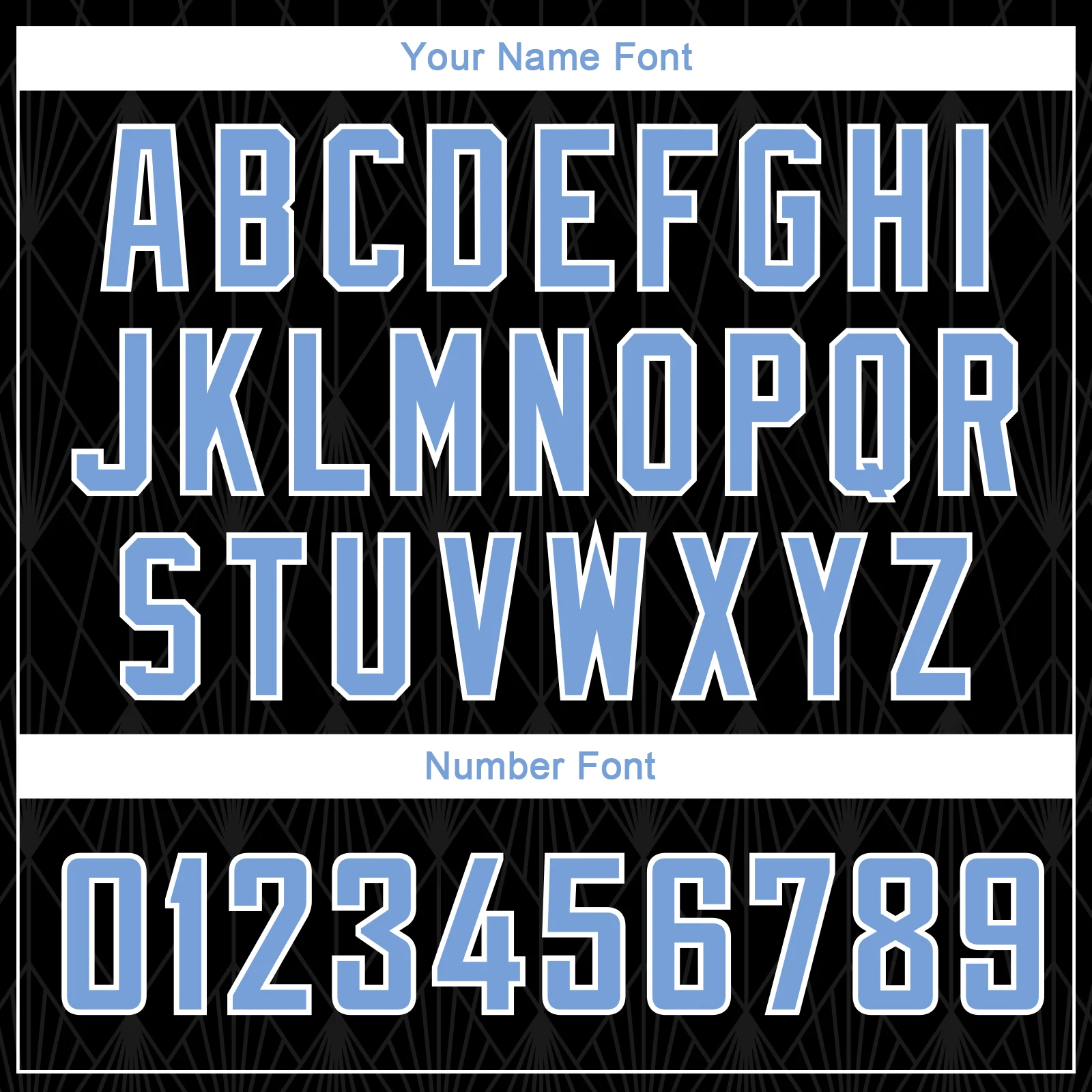Custom Black Light Blue-White Geometric Shapes And Side Stripes Authentic City Edition Basketball Jersey